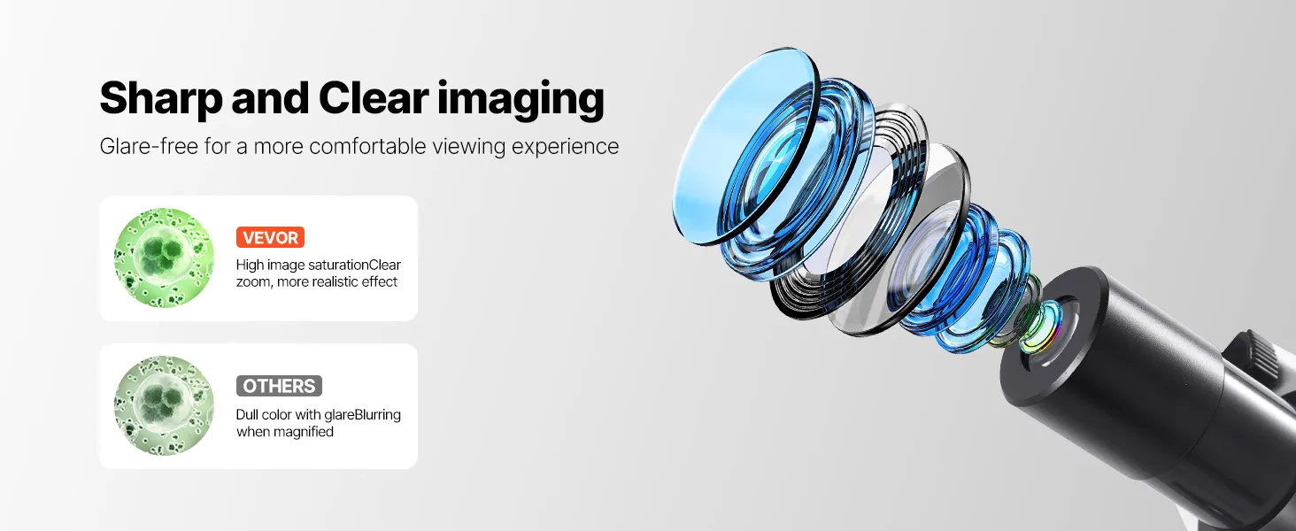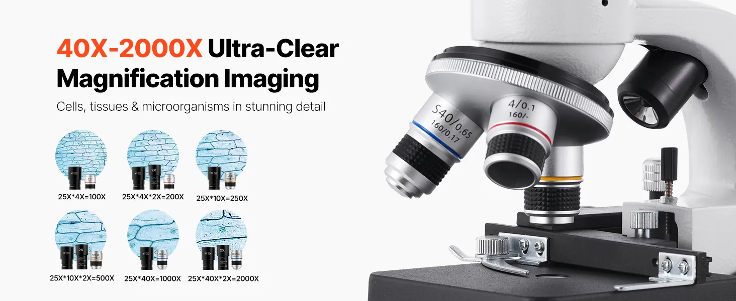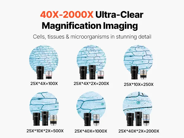 With a magnification range from 40X to 2000X, this microscope employs advanced imaging technology to ensure that each magnification level presents clear and detailed images, allowing you to explore the microscopic world up close.