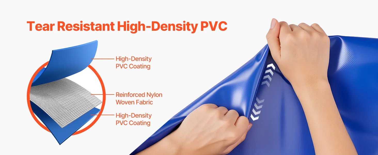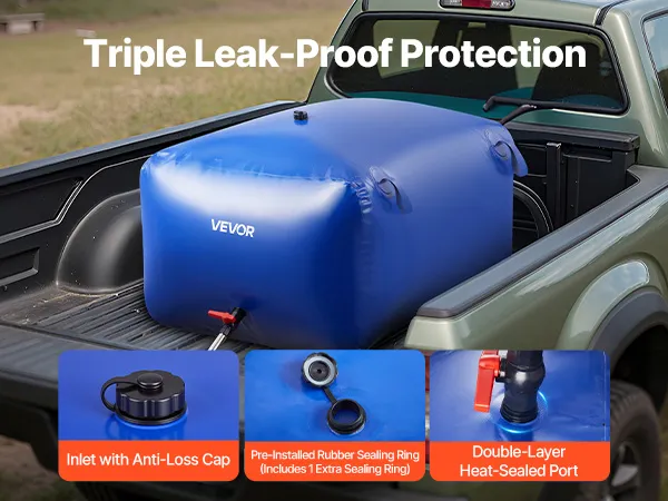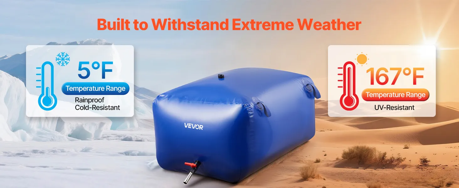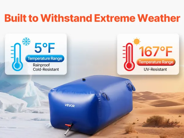 • 1000D Double-Layer PVC: The reinforced 1000D double-layer PVC, double-sided PVC coatings and a mesh middle layer ensures tear and abrasion resistance. Built to handle heavy pulling, the water storage container with a wide temperature tolerance of 5°F – 167°F, making it reliable in freezing and hot weather while extending service life.