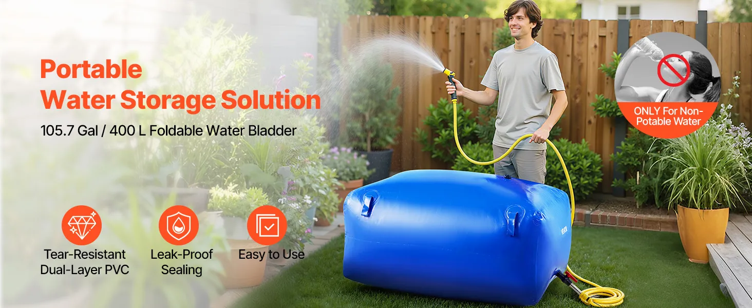 VEVOR 400L Collapsible PVC Water Storage Bladder – Leakproof, Portable Water Tank for RV, Camping, Garden & Emergency Use