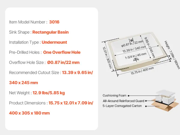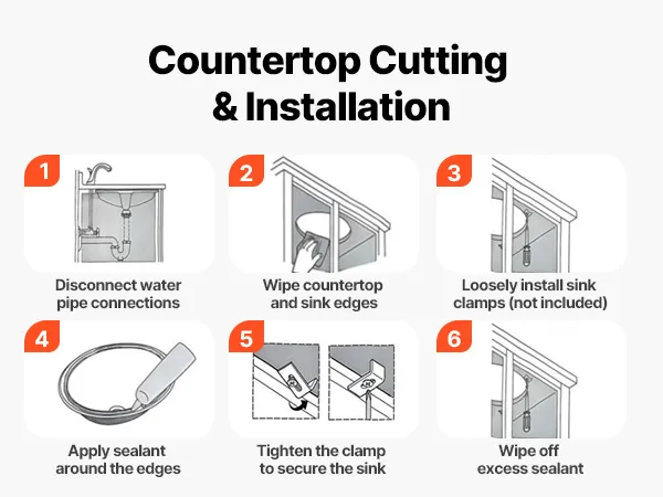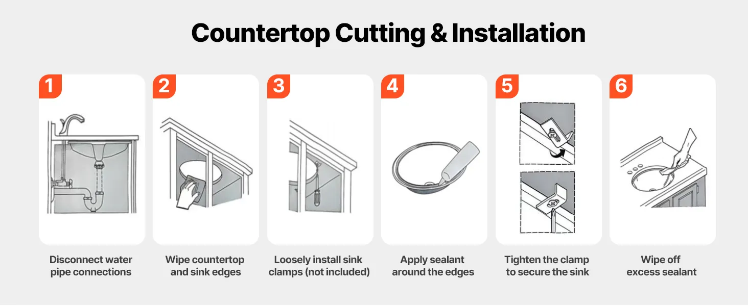 This drop in bathroom sink requires precise countertop cutouts before setup. It is recommended to use professional measurement and cutting based on the actual sink dimensions. Be sure to seal the edges securely to avoid damage caused by seeping water.