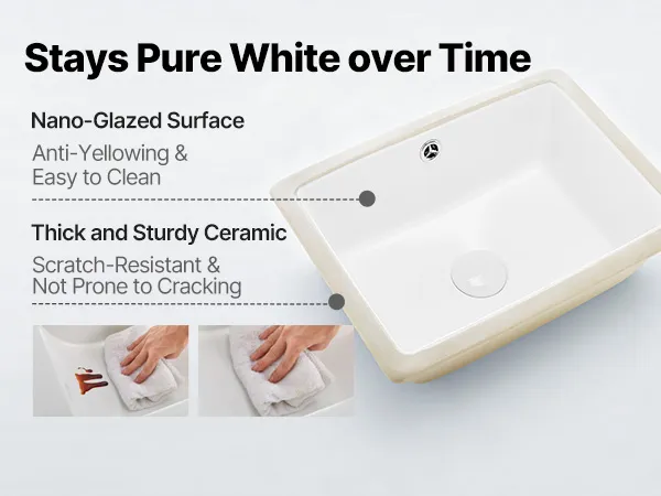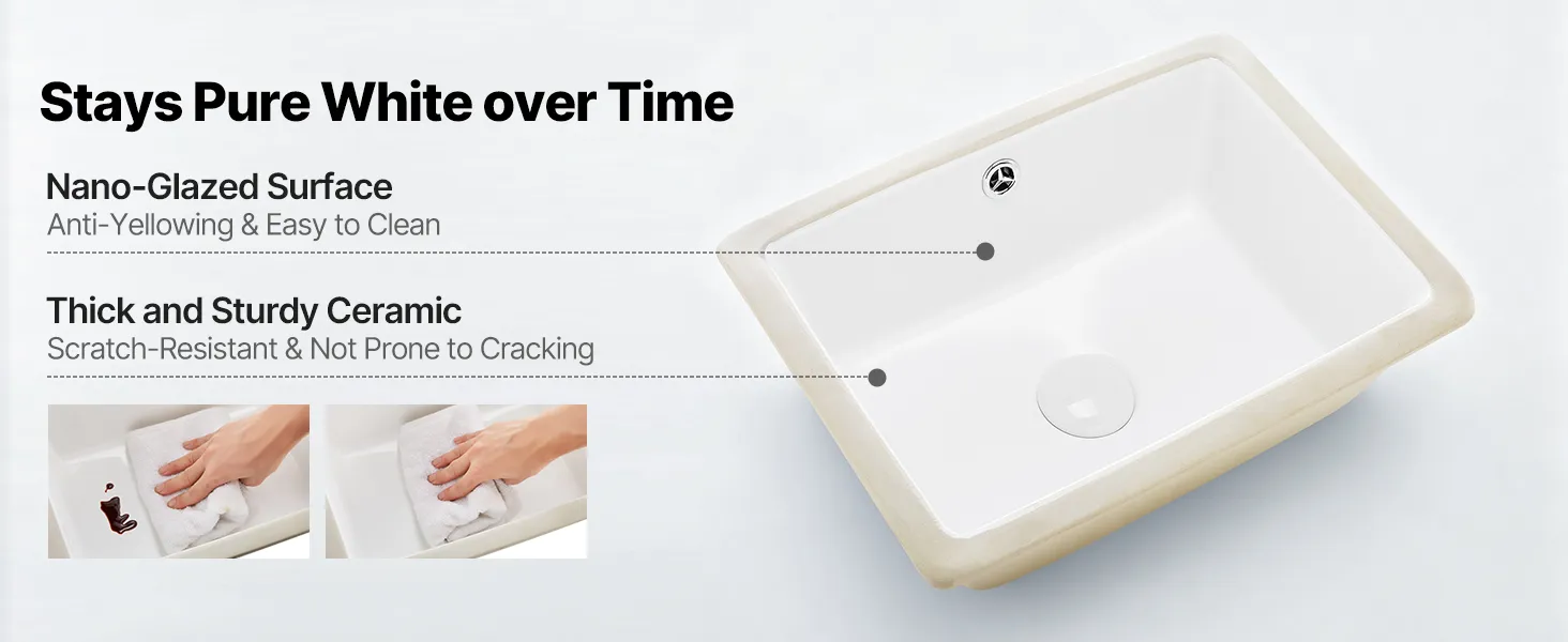 Fired at high temperatures for durability, this ceramic bathroom sink is coated with a nano-glaze layer that resists water stains, soap scum, and scratches. It stays bright and smooth over time, making everyday cleaning quick and effortless.