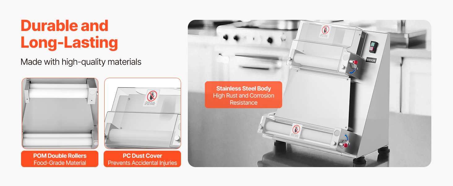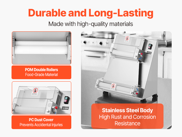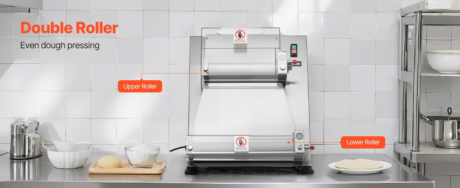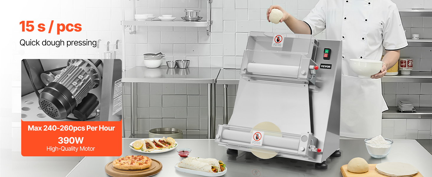VEVOR Pizza Dough Roller Sheeter, 3-16 Inch Semi-automatic Stainless Steel Pizza Press, Commercial Electric 390W Pasta Maker Machine, 260 pcs Per Hour, Adjustable Thickness, with Dough Press Lid