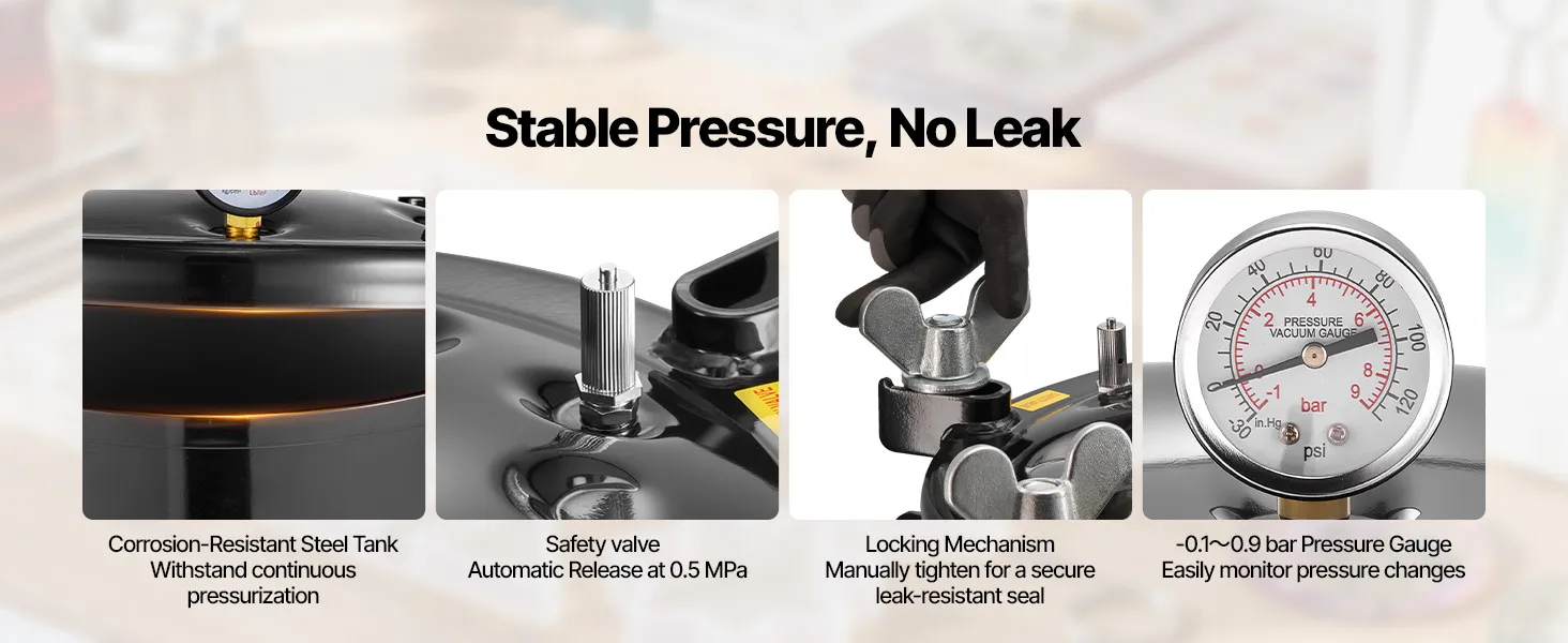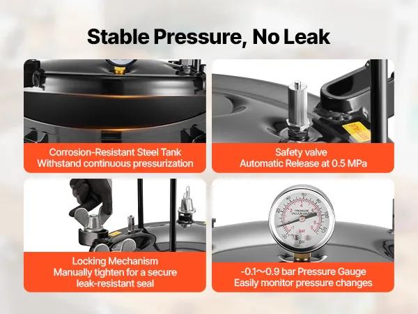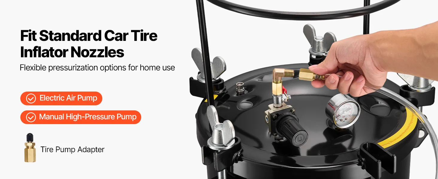 • Leak-Resistant Design: Engineered with a reinforced steel tank, this pressure pot maintains steady pressure throughout curing. Hand-tightened nuts secure the tank easily, and the included sealant further strengthens the seal, ensuring consistent performance without leaks