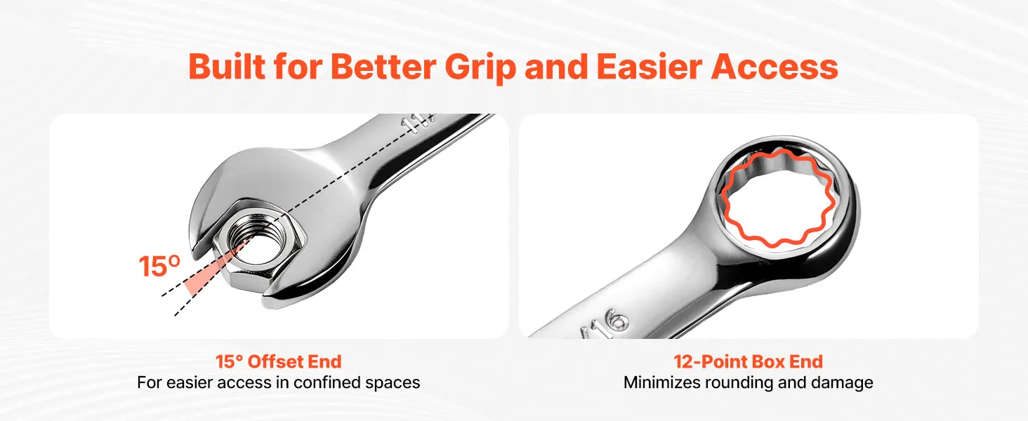 Whether you are working under the hood, inside an appliance, or near a wall bracket, these combination wrenches deliver controlled grip and flexible access. Their dual-end design maintains stability on worn fasteners while reaching awkward positions, reducing effort and improving overall efficiency.