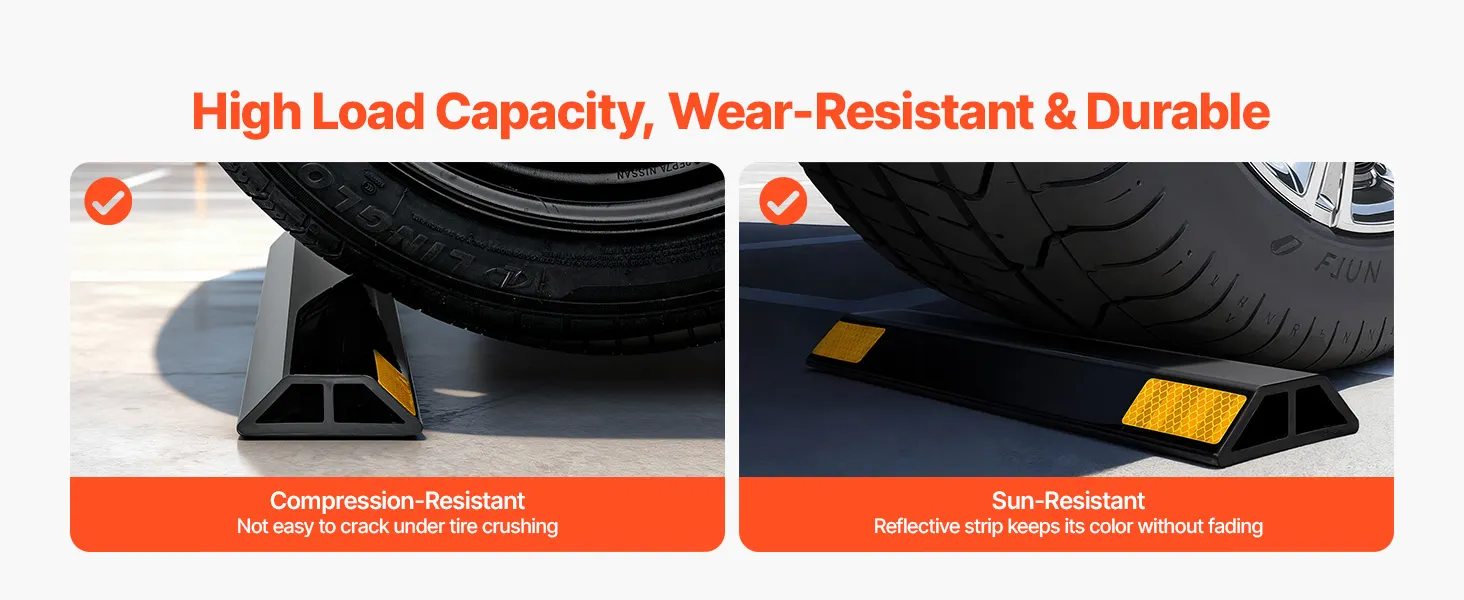 Built with a strong load-bearing capacity, the parking curb can withstand tire crushing without cracking. Sun-resistant design keeps the color of reflective strips bright over time.