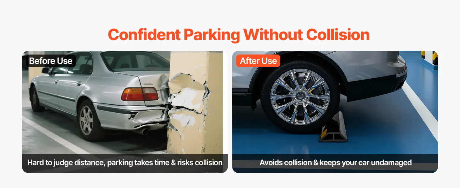 Without using our parking bumper, you may have difficulty judging distances when parking, which can be time-consuming and prone to collisions. After use, it avoids the vehicle reversing beyond the secure area and shields the vehicle from collision.