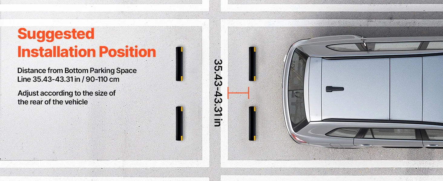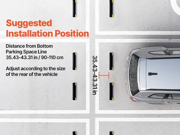 Recommended to install 35.43-43.31 in/90-110 cm from the bottom parking line. Our parking stop can be adjusted according to the size of the rear of the vehicle. Precise installation avoids the vehicle hitting the wall when reversing.