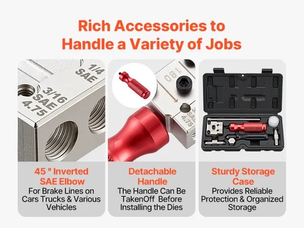 VEVOR Brake Line Flaring Tool Kit, 45° Single & Double Flare Tool for 4.75mm, 6.35mm Copper Tubing - with 2 Forming Dies, Deburring Tool & Toolbox for Automotive Brake Hydraulic Line Repair