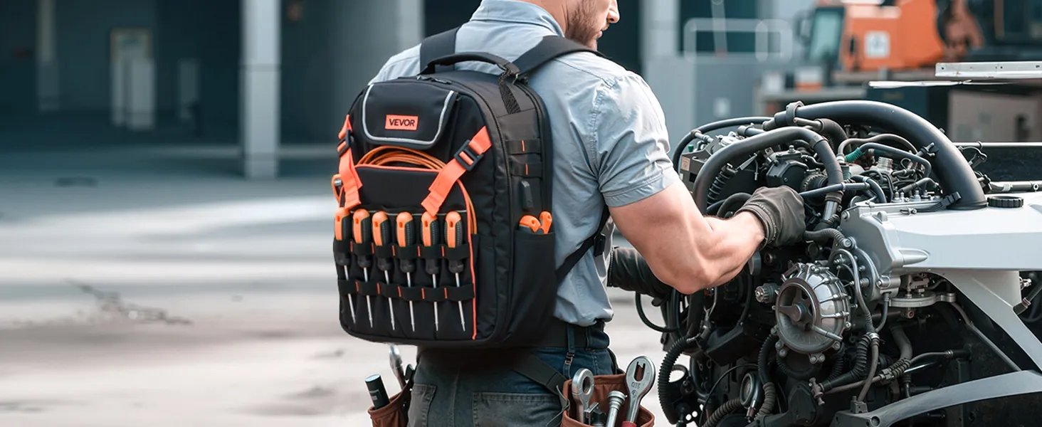 Прочный рюкзак для инструментов VEVOR с 45 карманами, отделением для ноутбука и усиленным дном, 22.8 л, для электриков