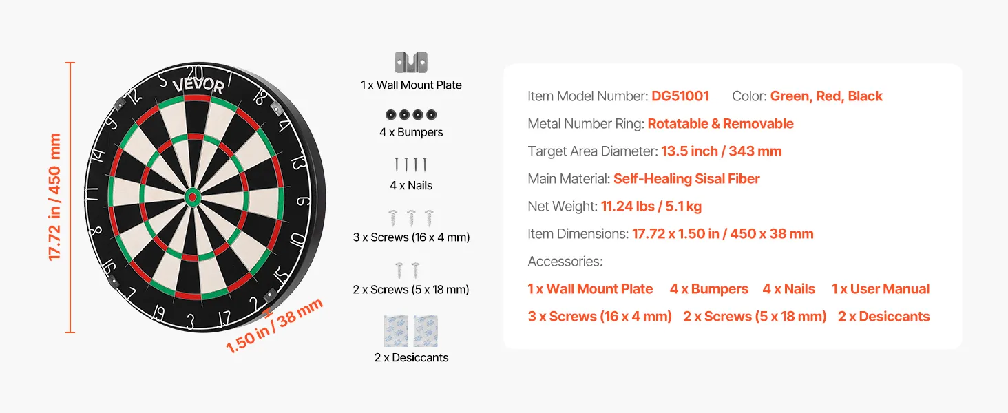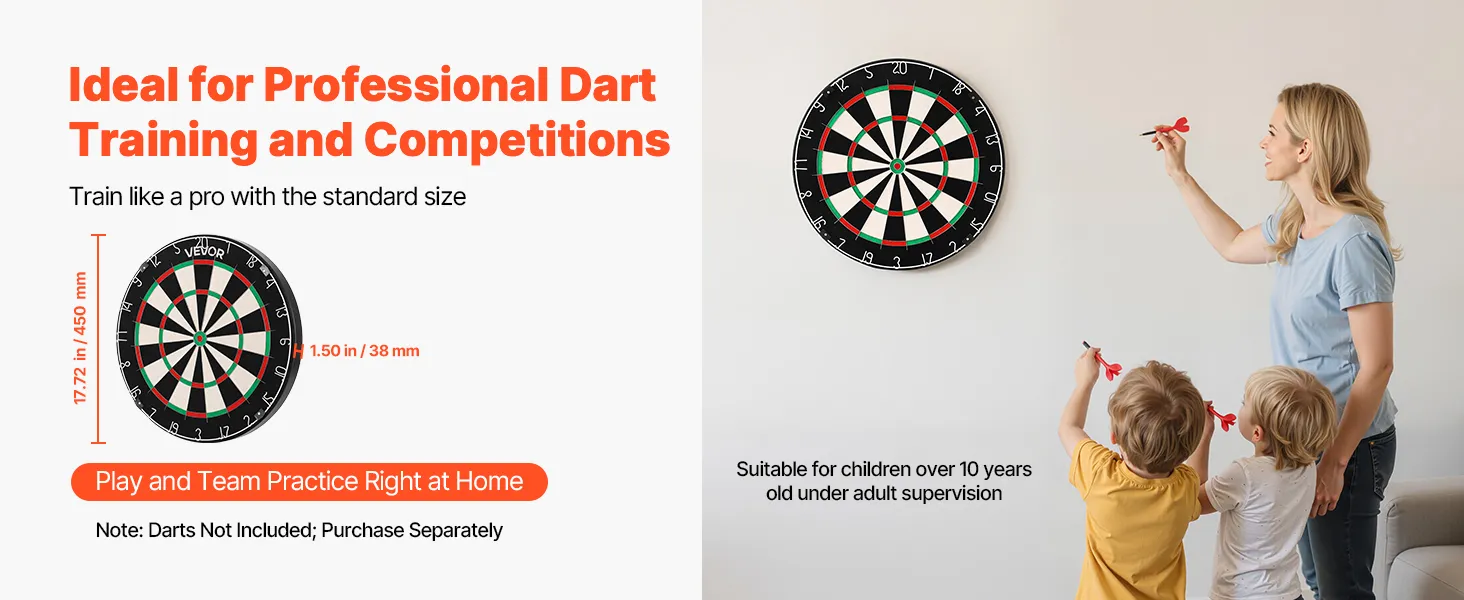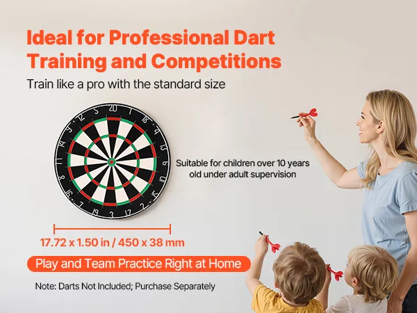 Measuring 17.72 inches with a 13.5-inch target area to meet international competition standards, this dart board lets you simulate real matches right at home, refine your aim, and enjoy the thrill of competitive play.