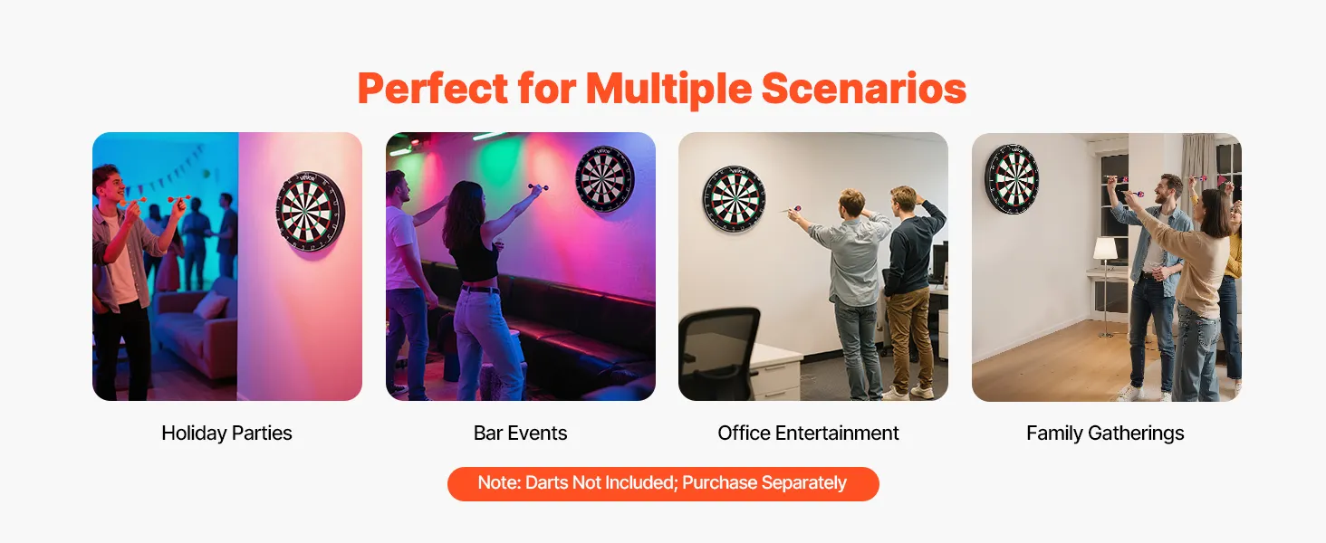 Whether it's a family gathering, holiday party, club house, or bar activity, this sisal dartboard fits seamlessly into any occasion. Combining interactive fun with competitive play, it's the perfect tool for socializing and relaxation.