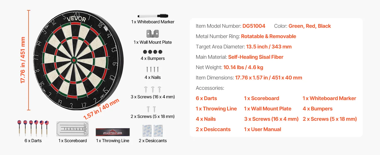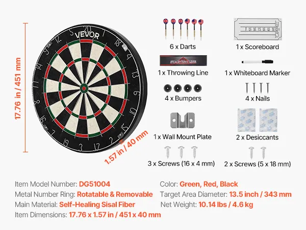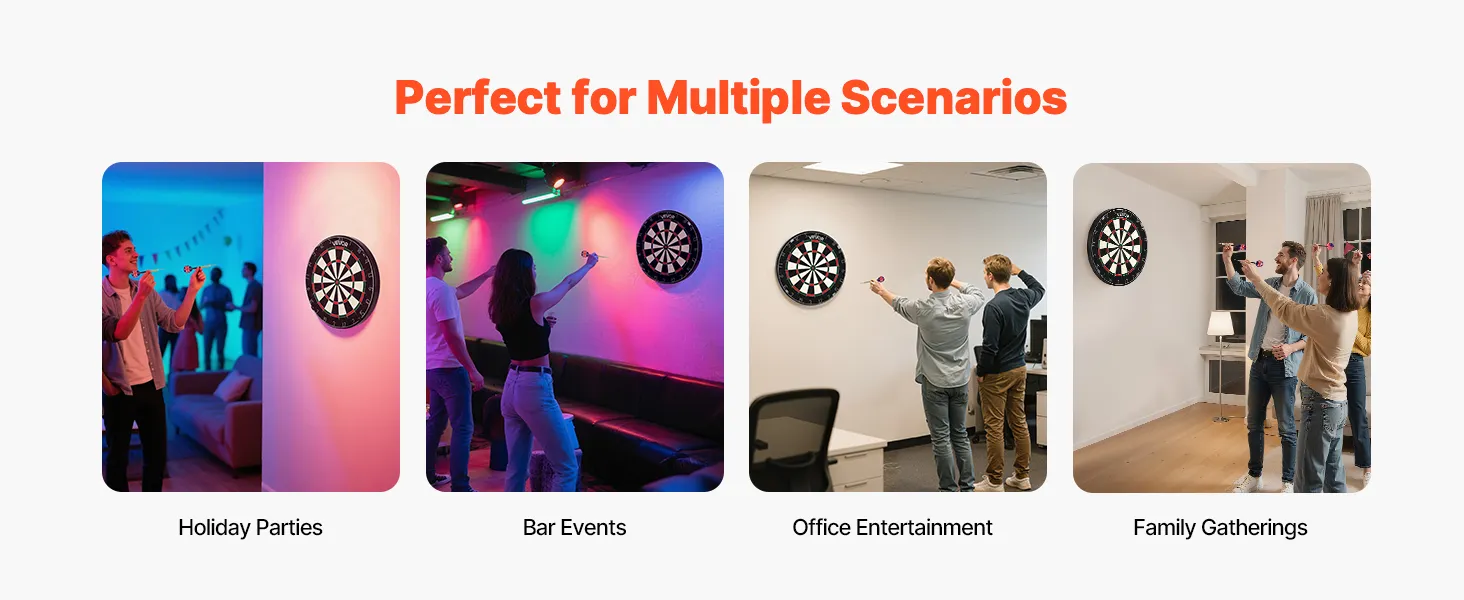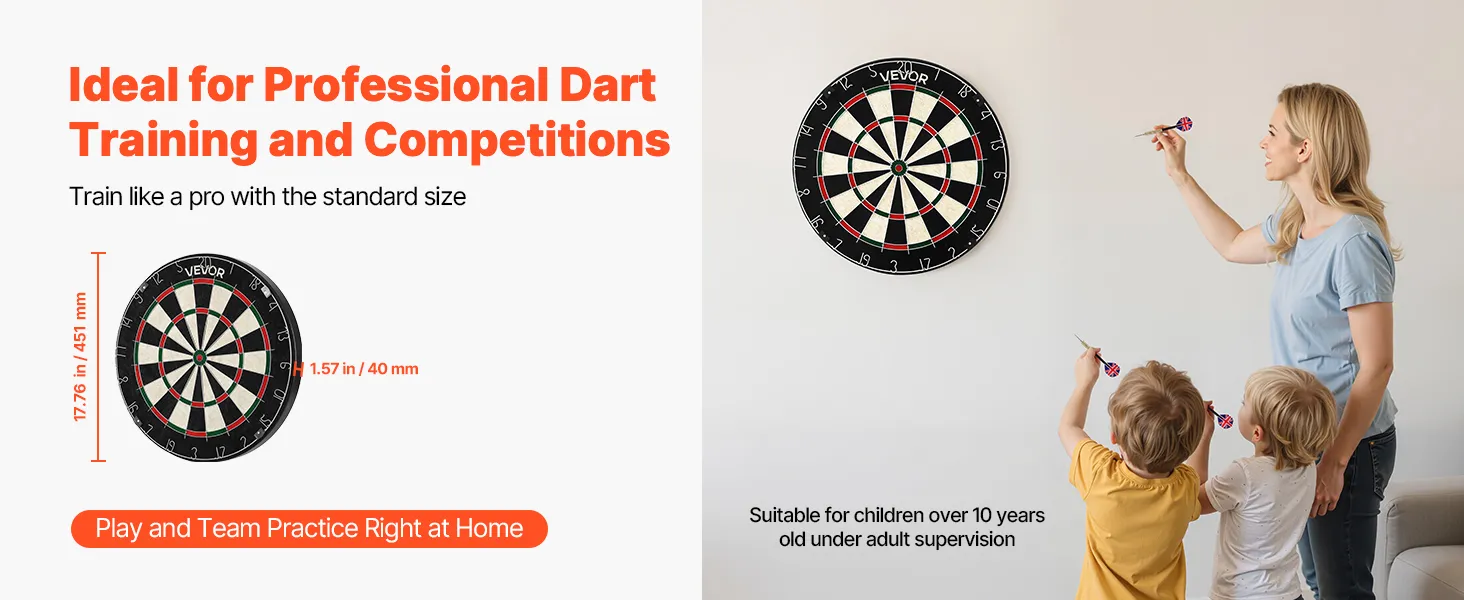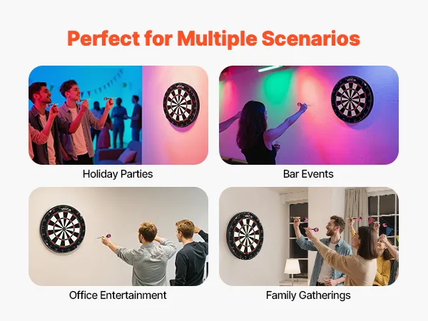 • Professional Size: 451mm diameter with a 343mm target area, meeting international competition standards. Ideal for family gatherings, office entertainment, holiday parties or bar events, offering fun-filled gameplay and interaction—great gift for family and friends