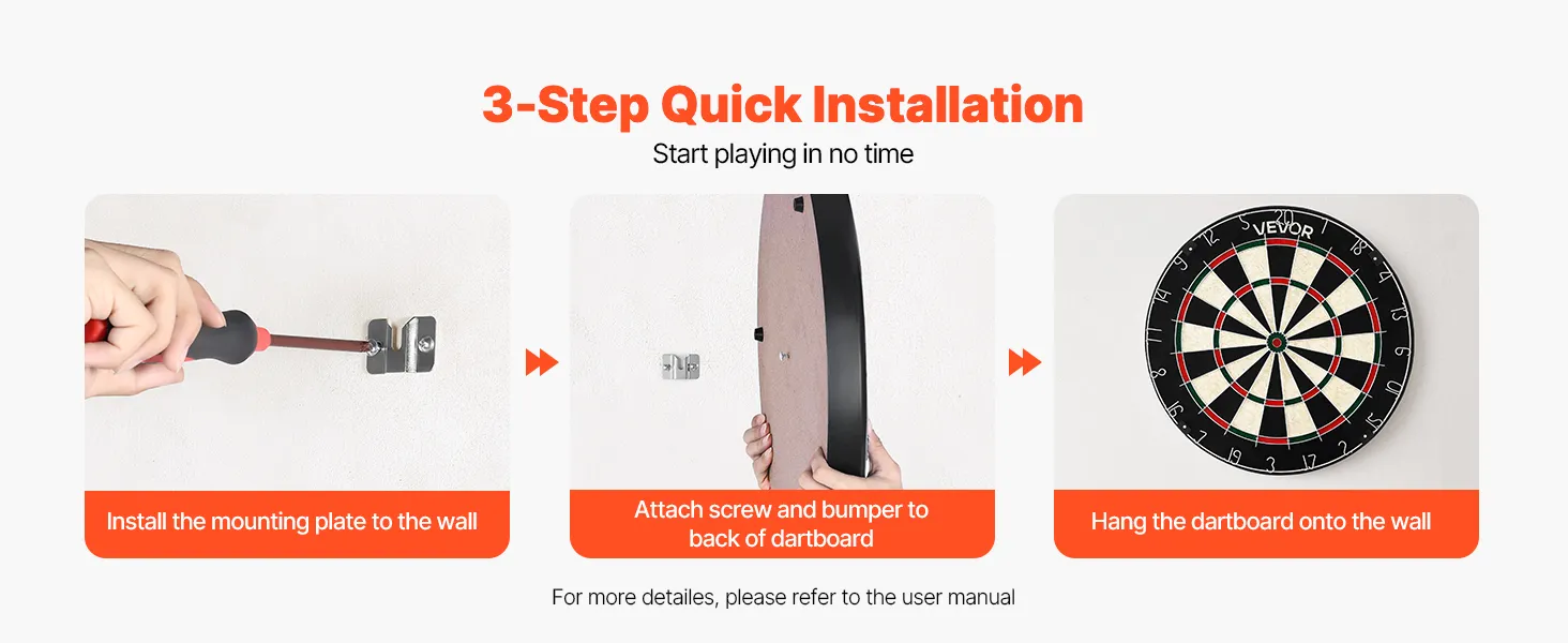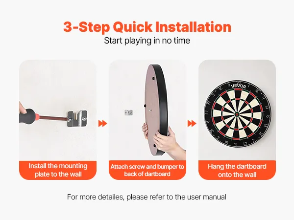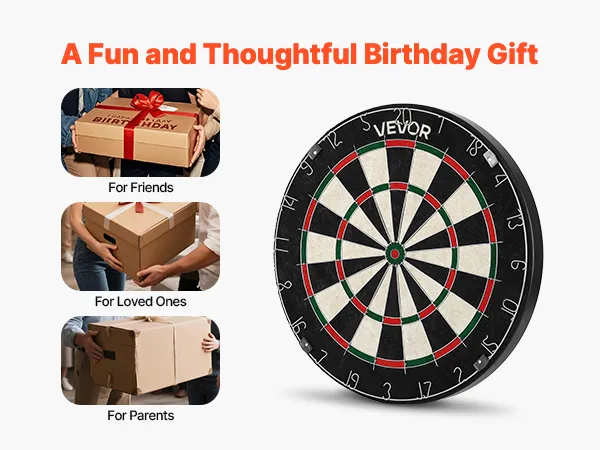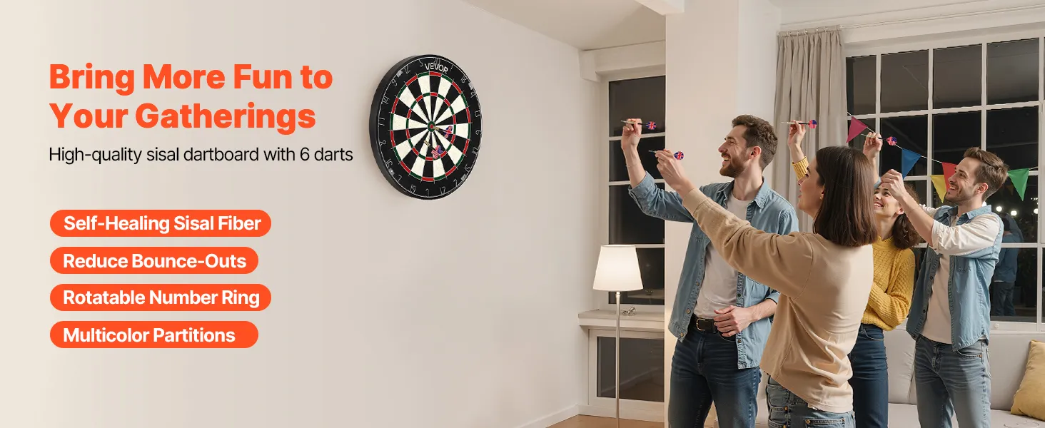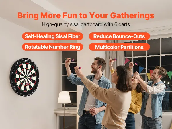• Self-Healing Sisal Fibers: Made from premium sisal fibers, this VEVOR dartboard self-heals after each throw, resists fraying and shedding, and offers consistent dart holding for precision throws and long-lasting play. Enjoy fun games, interactive play with family and friends