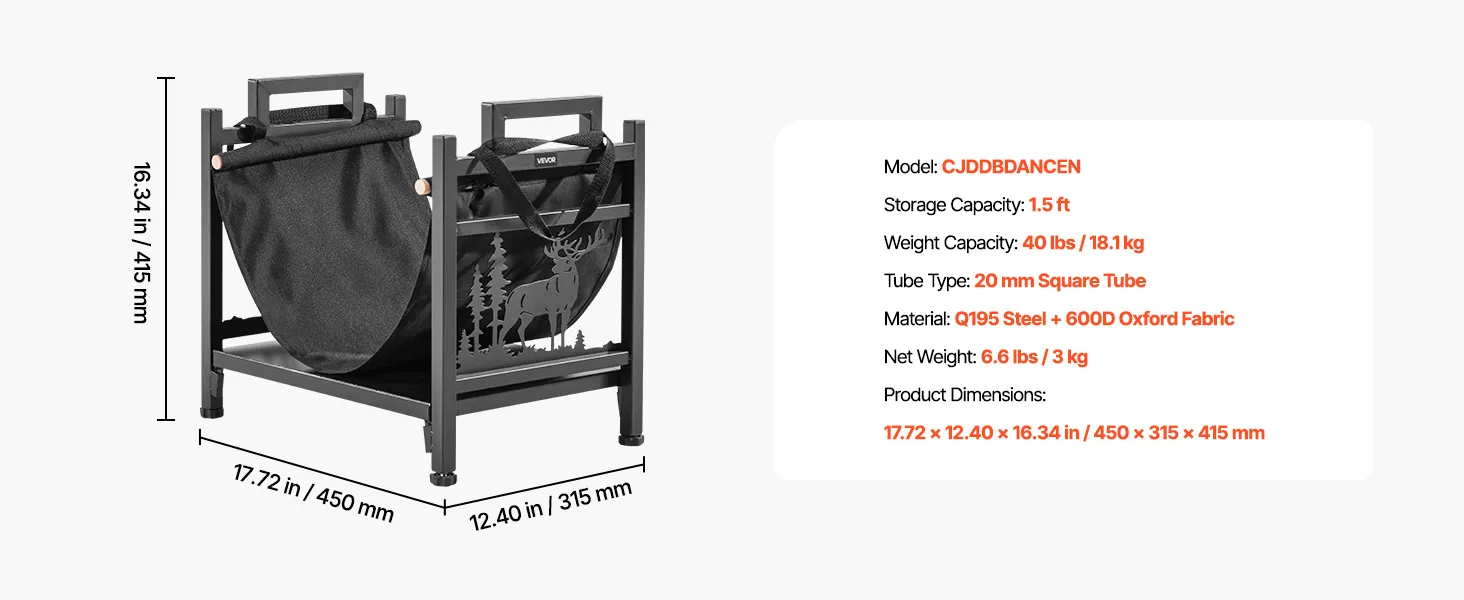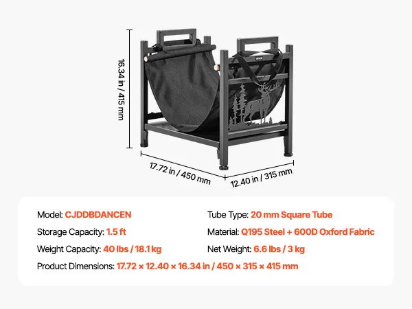 Made with weather-resistant powder-coated steel tubing, this firewood rack supports up to 40 lbs and weighs 6.6 lbs. Its compact size fits fireplaces, wood stoves, and outdoor fire pits, holding 10–20 logs—enough for 4–5 hours burning. Includes a canvas carry bag for one-trip wood transport.