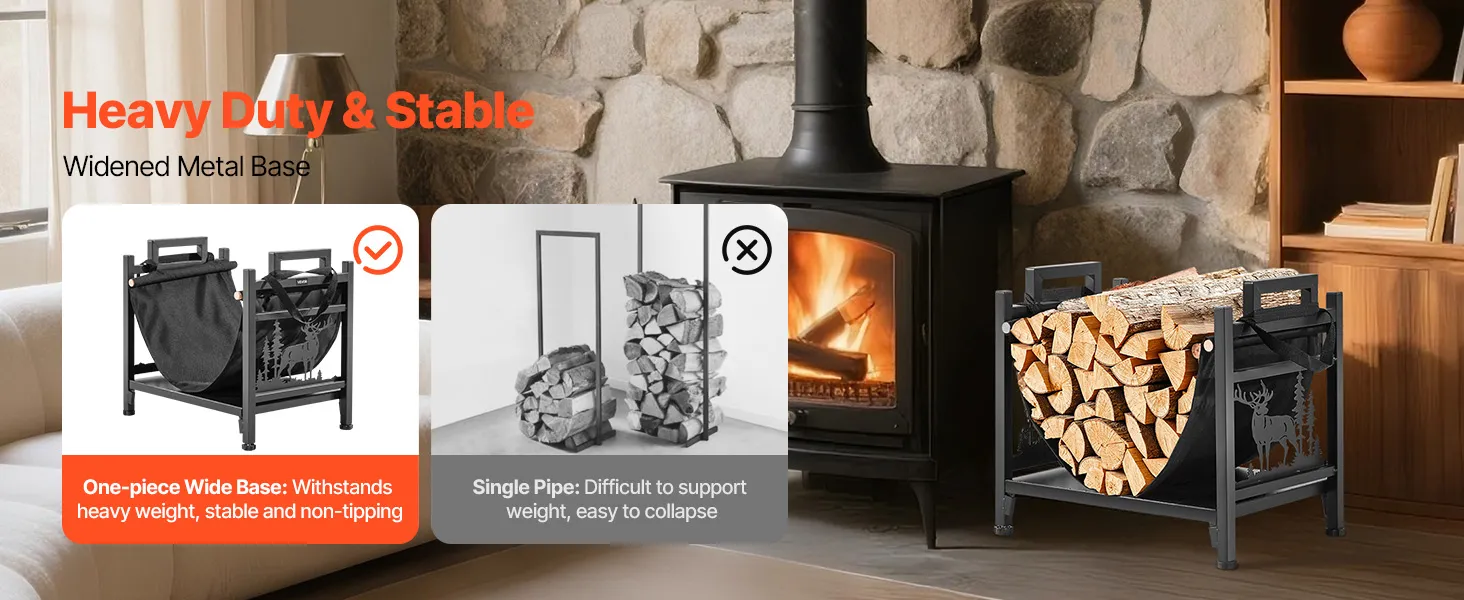 Our large-capacity wood racks can securely hold up to 40 lbs of firewood , ensuring you have more than enough to keep your family warm and your home well-stocked all winter long.