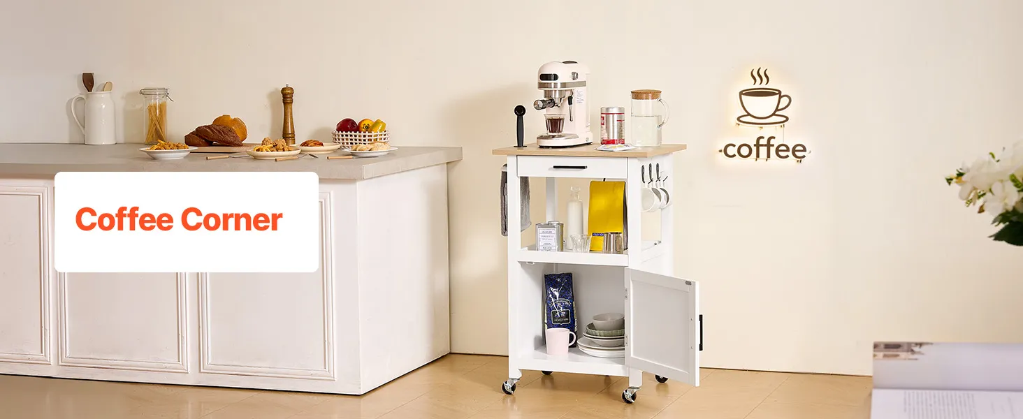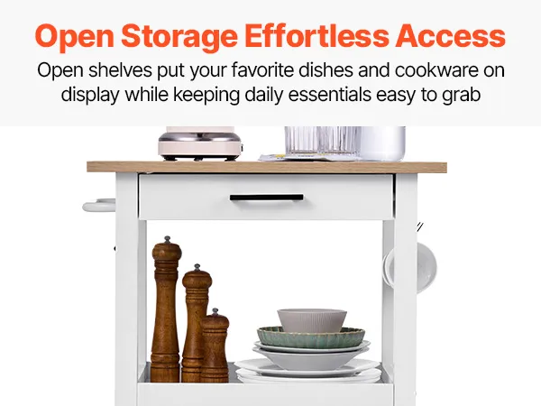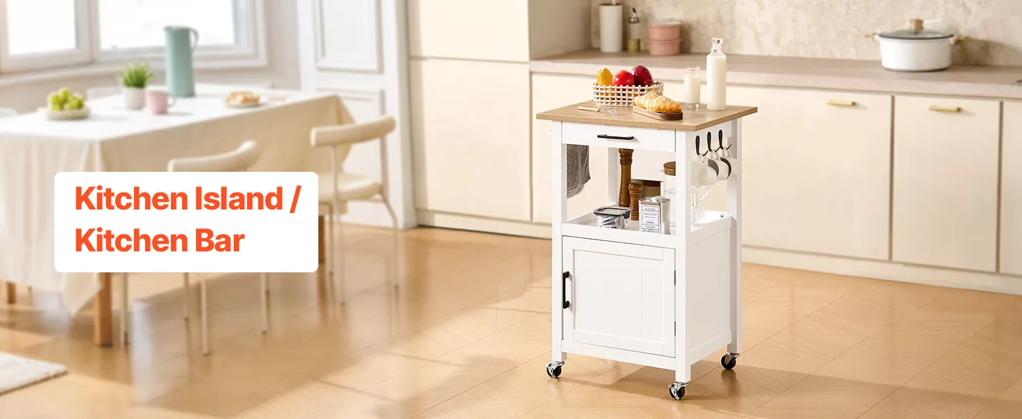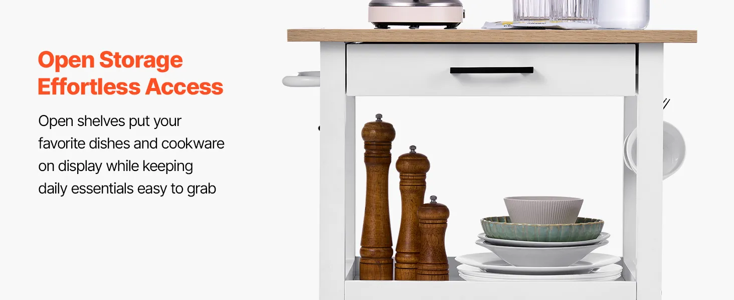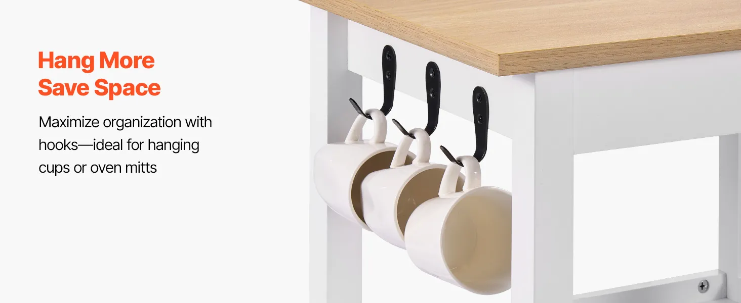 This versatile island combines racks, shelves, and cabinets to organize cookware, utensils, and pantry staples with ease. Smooth-rolling casters glide effortlessly across floors, letting you reposition the unit from kitchen counters to dining areas or even outdoor BBQ setups.