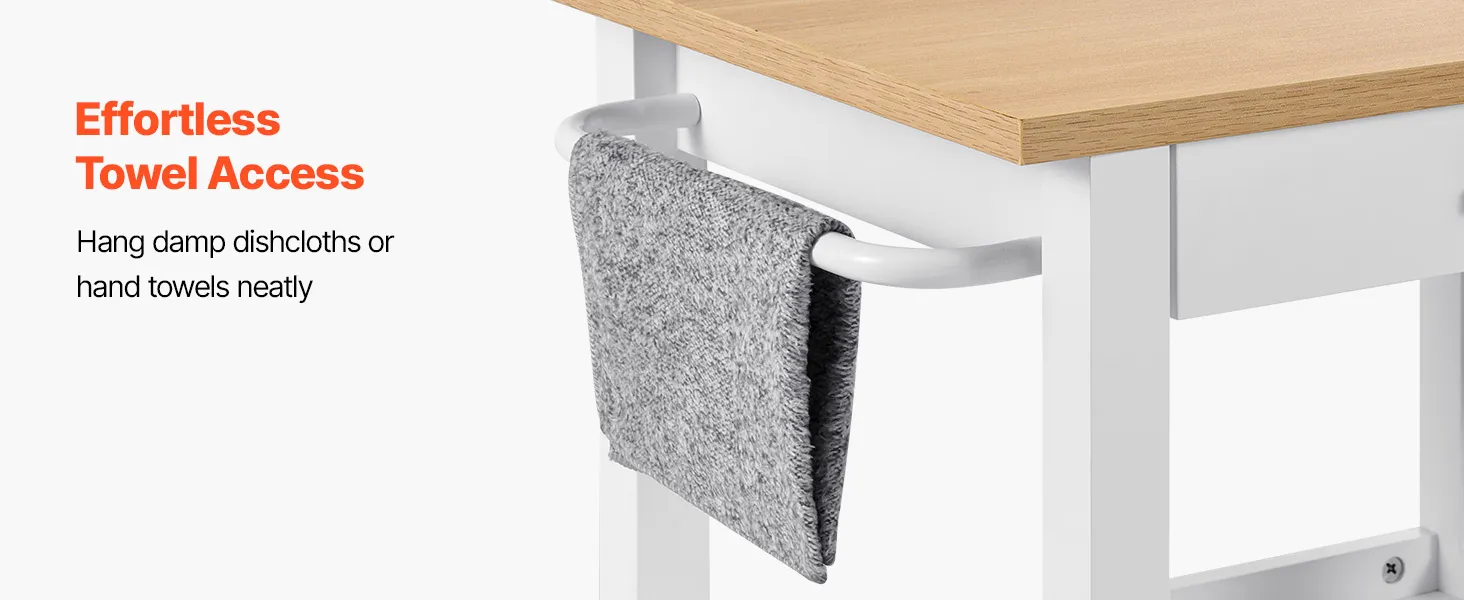 VEVOR Kitchen Island Cart with Single Door Cabinet, Mobile Carts with Drawer, Towel Rack, Hooks, Portable Table on Swivel Wheels, Small Coffee Islands Microwave Stand for Dining Room, 45x59cm, White