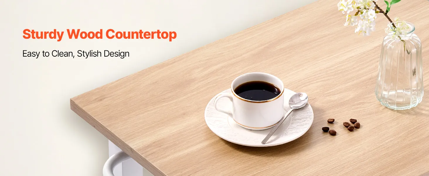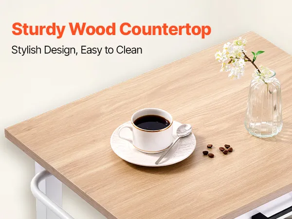 This kitchen island with top chooses durable wood board for organic elegance. The surface resists scratches, simplify cleaning, and elevate kitchen aesthetics.