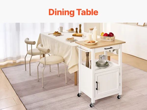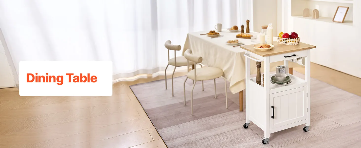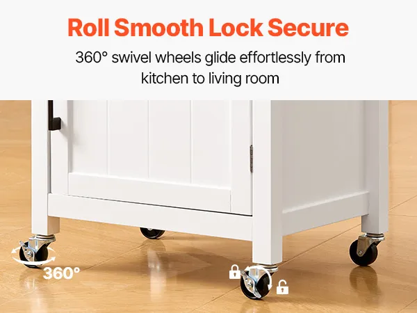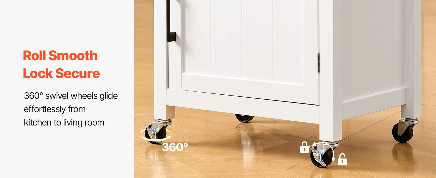 Our kitchen storage island owns locking casters which allow smooth repositioning and secure placement, adapting to dynamic kitchen layouts while maintaining stability during use.