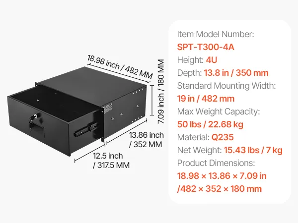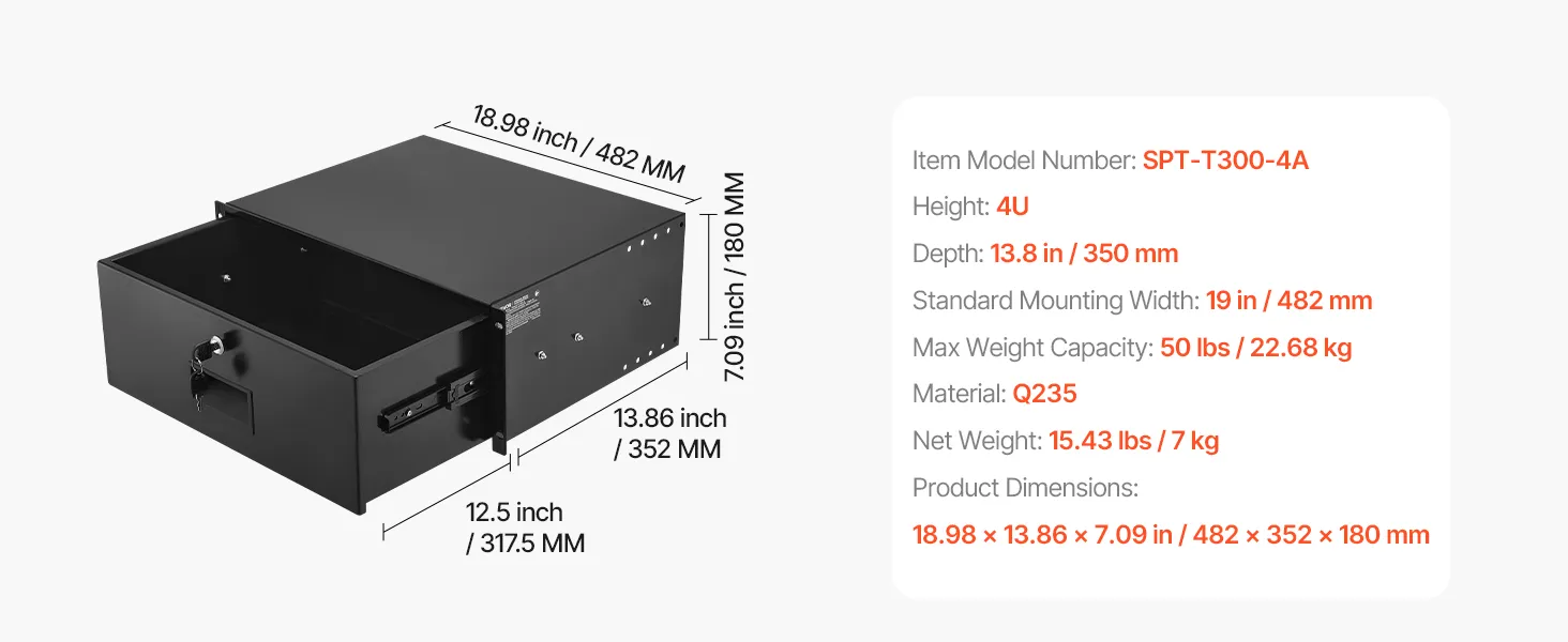 This rack mount drawer provides a sturdy structure, supporting up to 50 lbs/22.68 kg.
