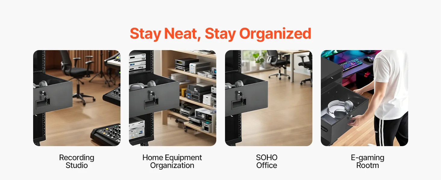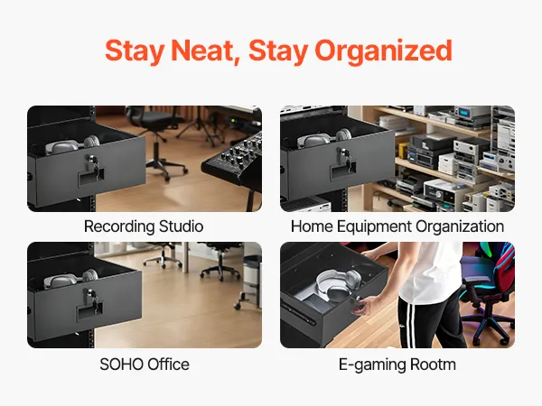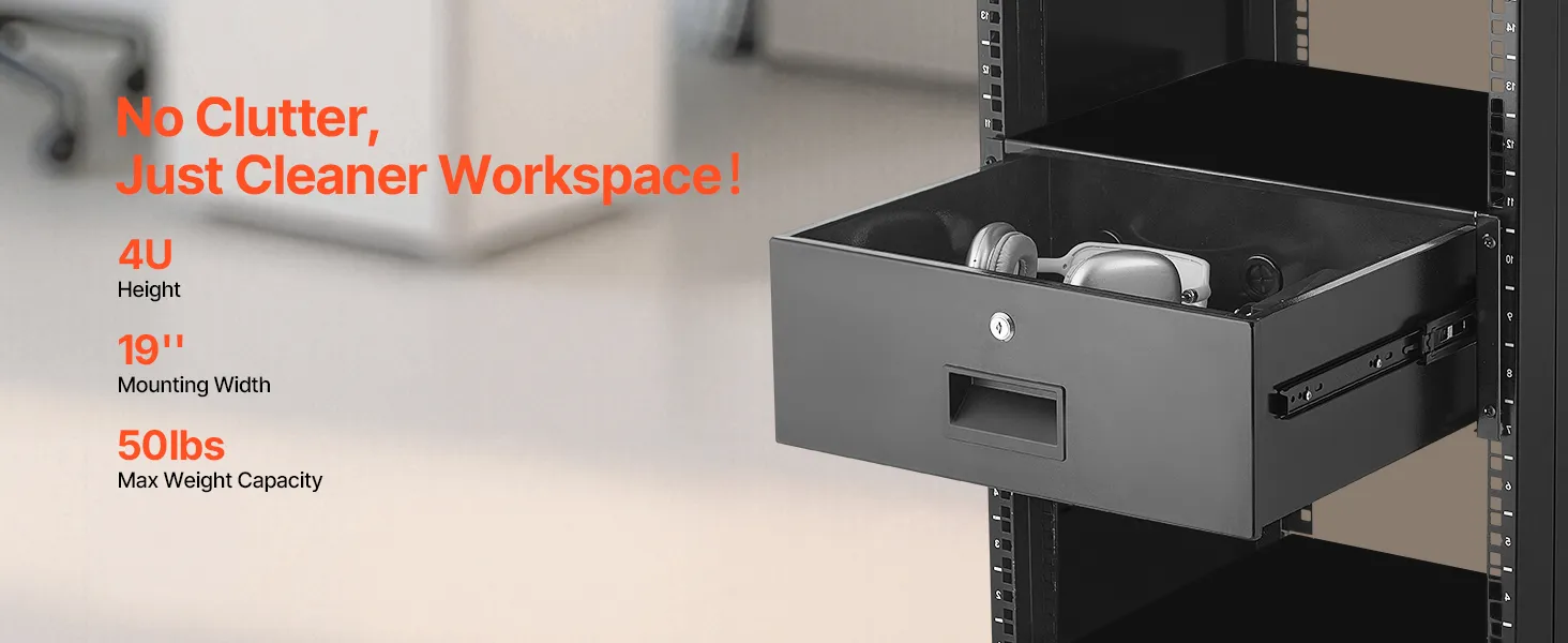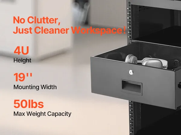 VEVOR 4U Rack Mount Drawer, 22.68 kg Max Load-Bearing, Lockable Server Cabinet Case, Sliding Drawer with Lock and Cable Management Holes, for Network Equipment Server AV Rack or Cabinet Enclosure