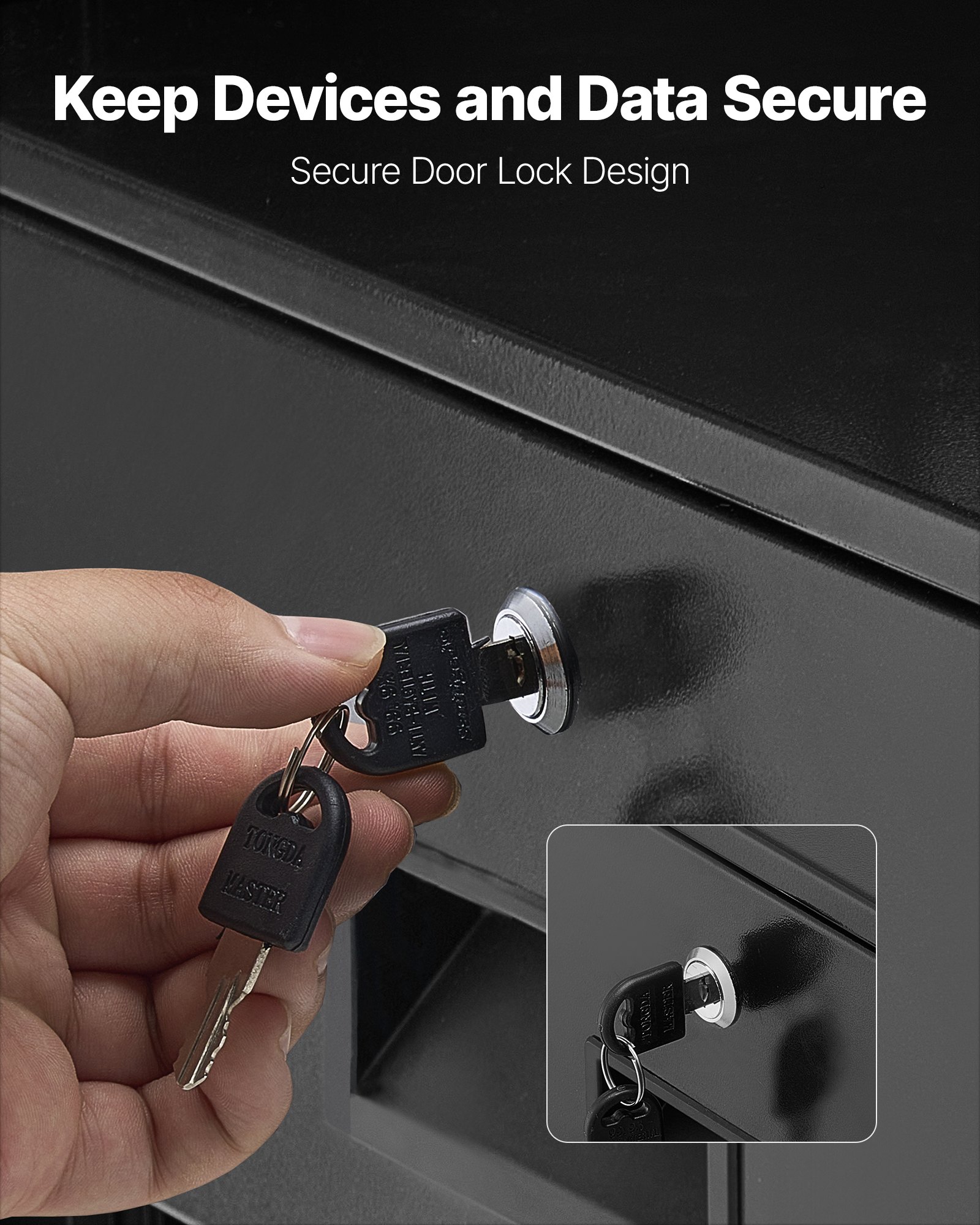 This rack drawer is designed to fit standard 19-inch server racks and cabinets. Made from solid steel, it supports up to 50 lbs (22.68 kg) of weight. The lockable drawer provides extra security for your valuable equipment, while 3 cable management holes keep your workspace tidy and organized.