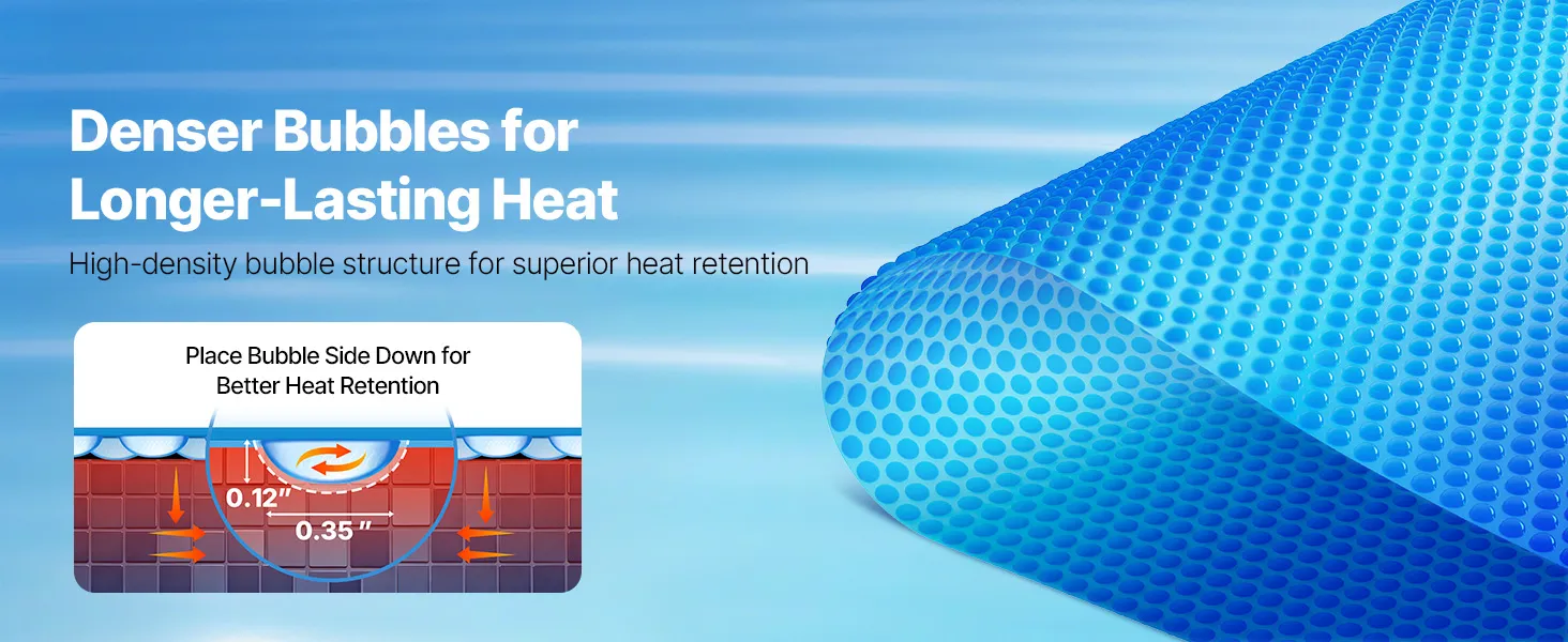The tightly packed micro-bubbles on this solar pool cover enhance heat retention, preventing heat loss and keeping your pool at the ideal temperature. Enjoy a warm, comfortable swim without the chill, even on cooler days.