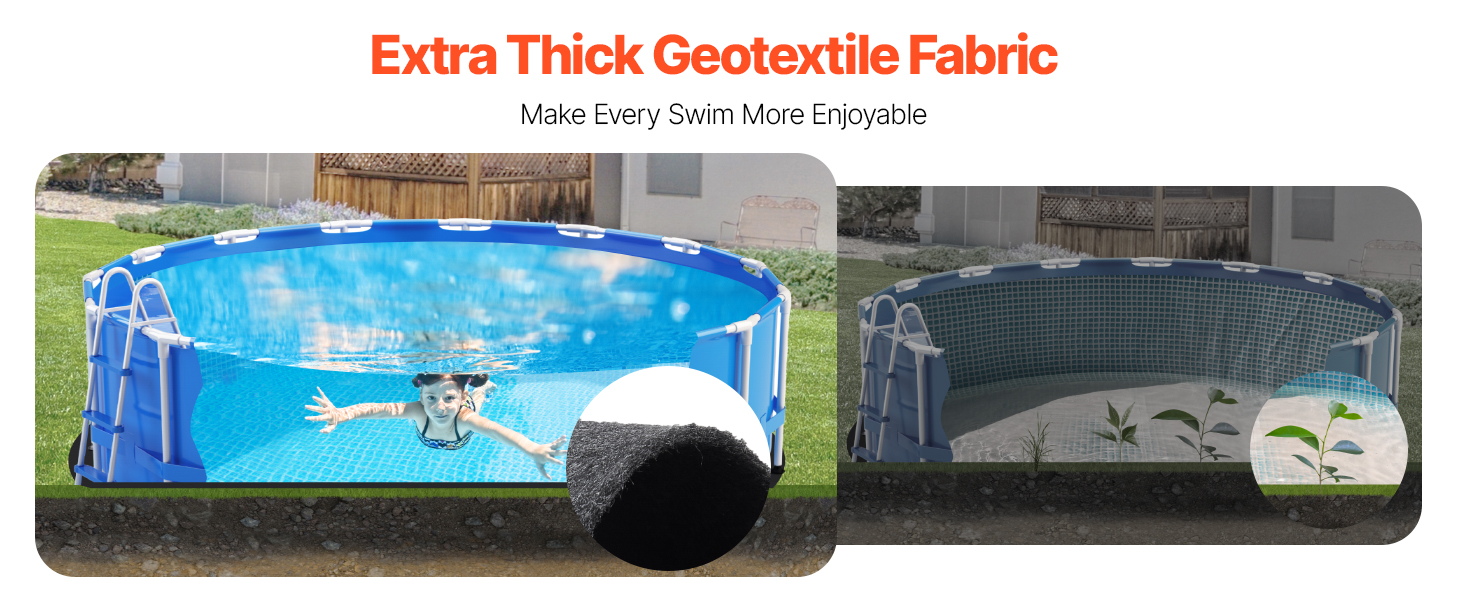 Our extra-thick pool liner pad provides superior protection against sharp objects, weeds, and water contamination. Designed for easy installation and maximum durability, it ensures a secure, clean, and comfortable swimming experience for you and your family, all summer long.