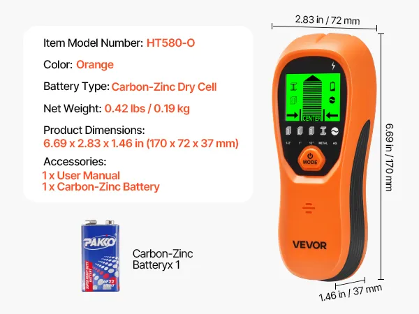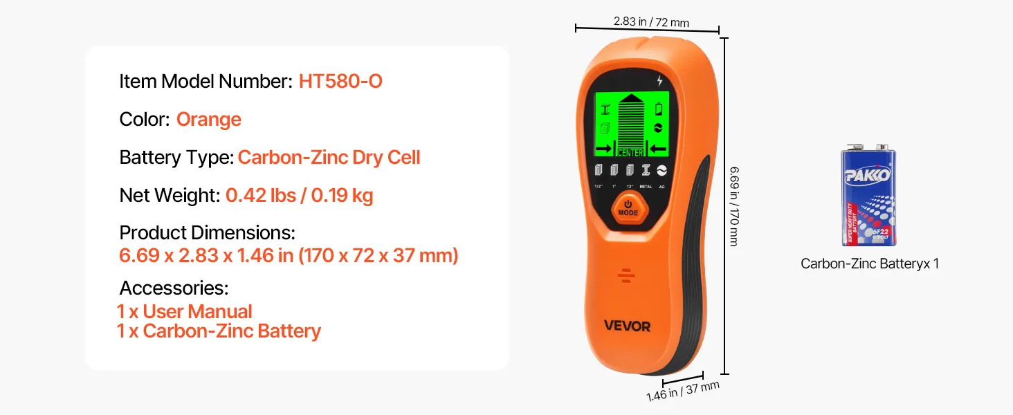 VEVOR Stud Finder Wall Scanner, 5 in 1, Electronic Wall Stud Detector with Smart Sensor, High-Definition LCD Display and Audio Alarm, for the Center and Edge of Metal, AC Wire, Joists, Pipes, Orange