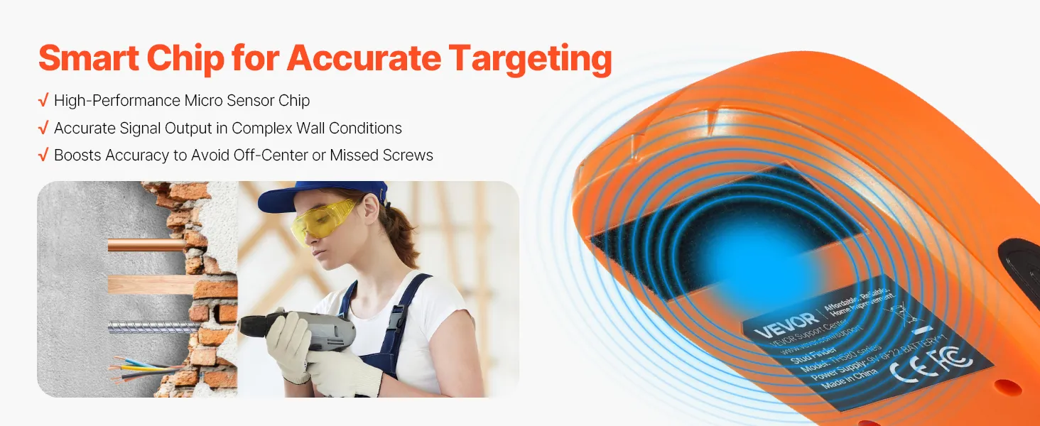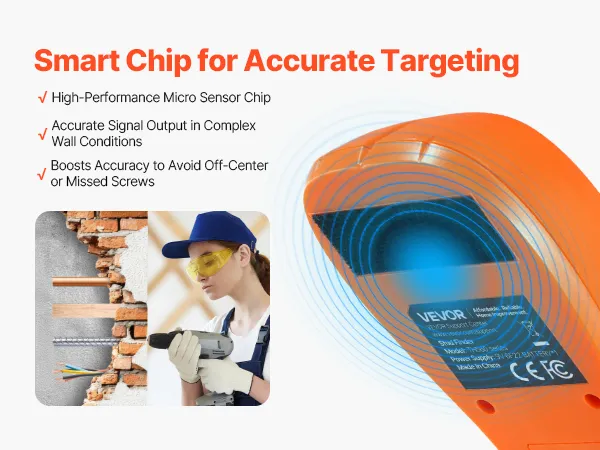 Equipped with a high-performance micro-sensor chip, the wall stud finder delivers exceptional data recognition to precisely locate the center and edges. This ensures accurate installation without damaging walls, even in complex material environments. Stable and precise signals every time.