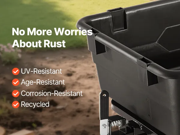Изготовленный из устойчивого к ультрафиолетовому излучению, атмосферным воздействиям и коррозии полипропилена, этот садовый прицеп выдерживает воздействие непогоды, сохраняя при этом свой как новый внешний вид. Экологически чистый переработанный материал повышает долговечность и снижает воздействие на окружающую среду.
