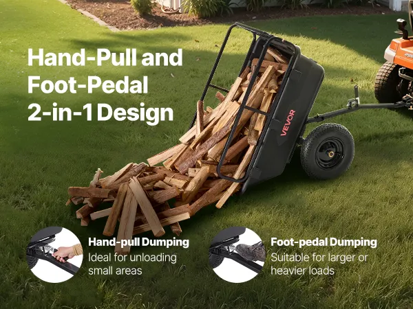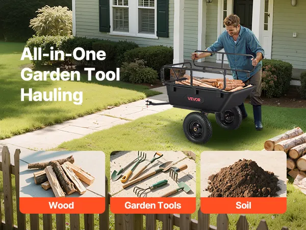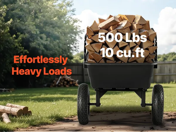 Оснащенный прочной стальной нижней рамой и пневматическими шинами, этот дворовый прицеп выдерживает нагрузку до 500 фунтов. При перевозке почвы, веток или сельскохозяйственных инструментов он легко справляется с нагрузкой. Вместимость в 10 кубических футов обеспечивает достаточно места для большего количества предметов за одну поездку.