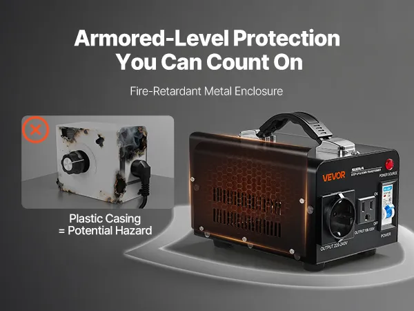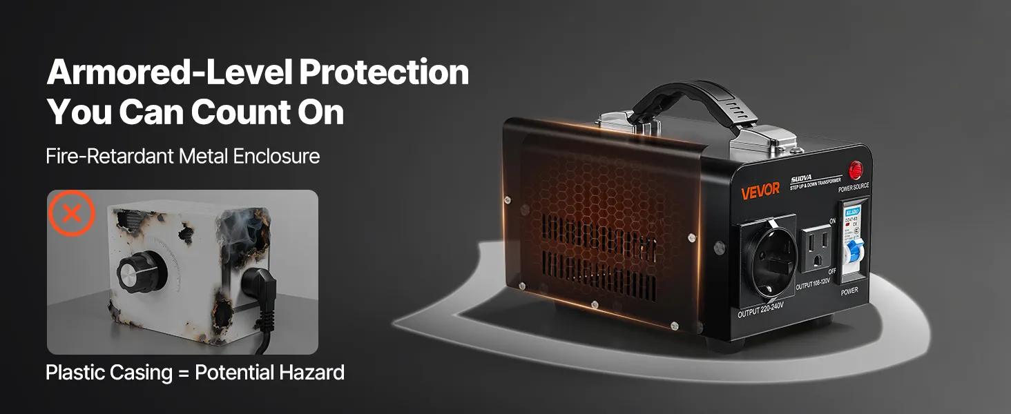 • Security Comes First: This step up down voltage transformer features dual protection: an air switch for overcurrent protection and a resettable circuit breaker for overload protection. Keeps your devices secure during operation