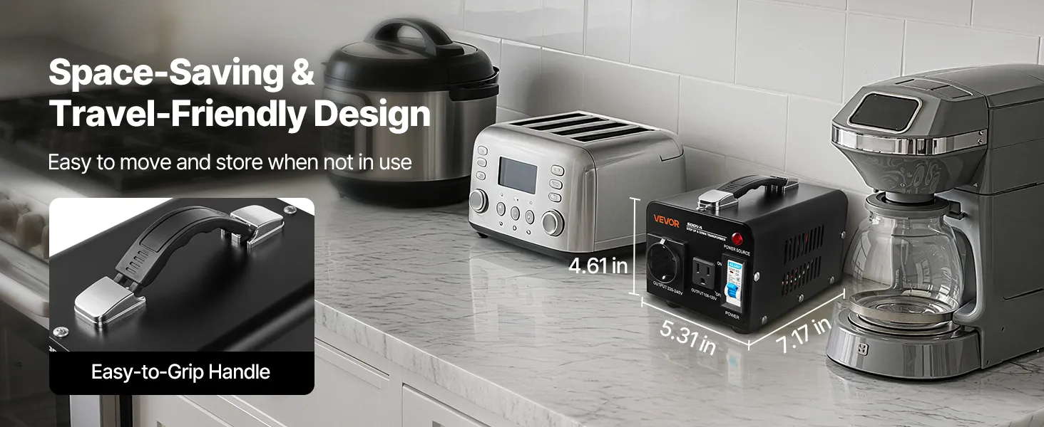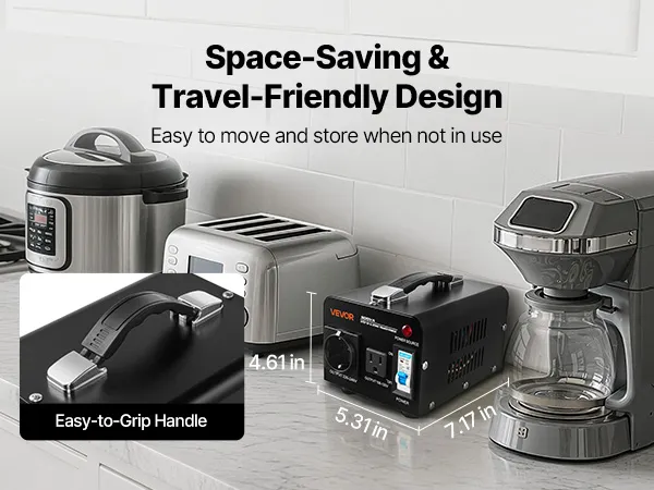 • Compact Size, Big Convenience: The compact body takes up minimal space, while a top handle makes it easy to move around the home or travel with. Whether you’re at home or abroad, our step up step down transformer powers your electronics anywhere