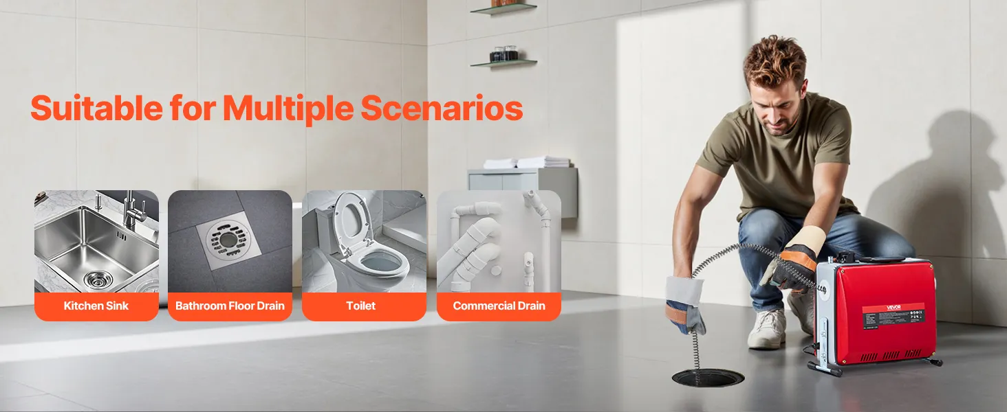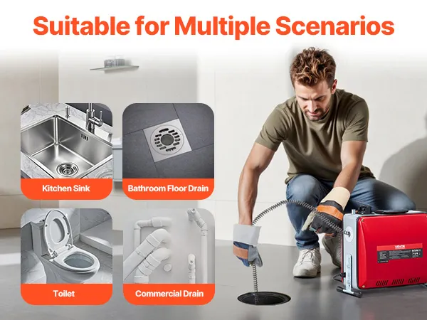 • Multifunctional Use: This electric sewer pipe cleaner is suitable for use in sinks, showers, sewer, toilets, bathroom, kitchen and floor drains, providing versatile solutions for a wide range of applications