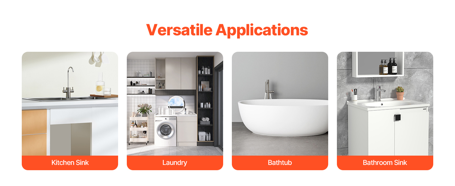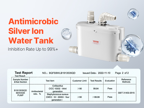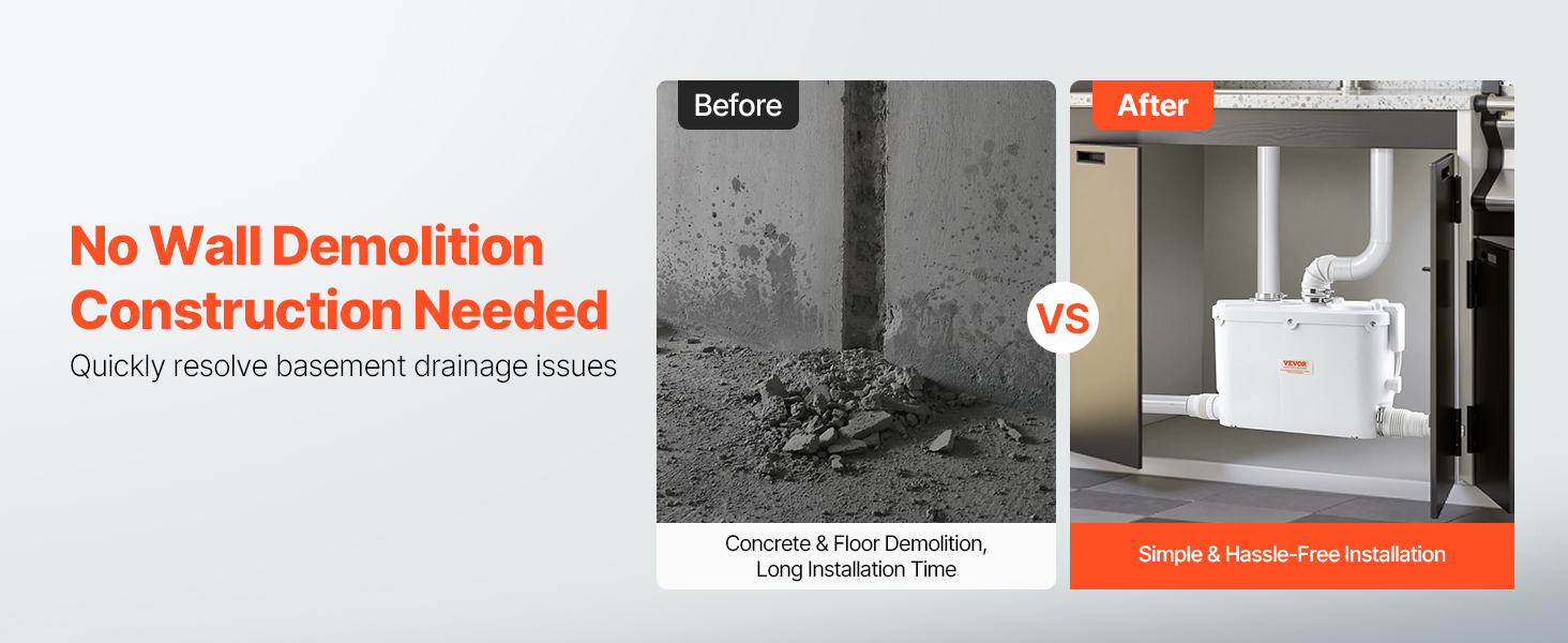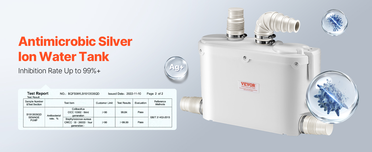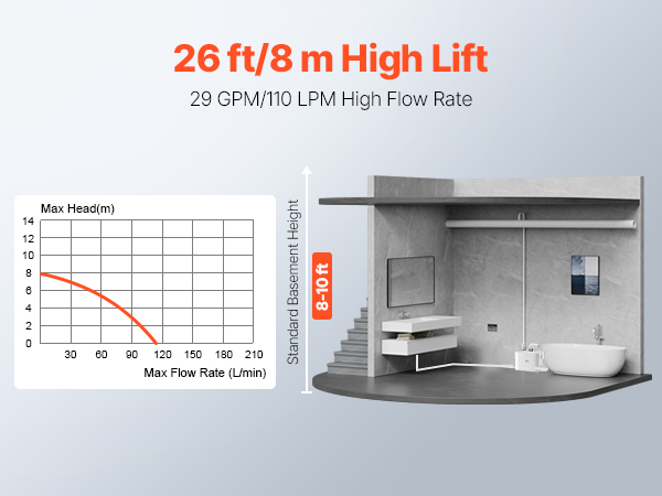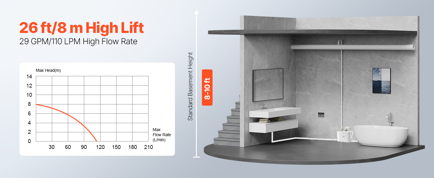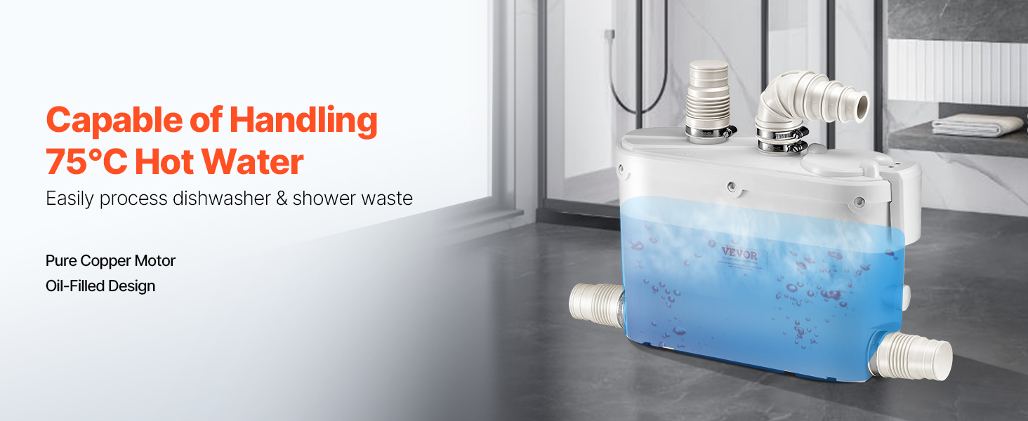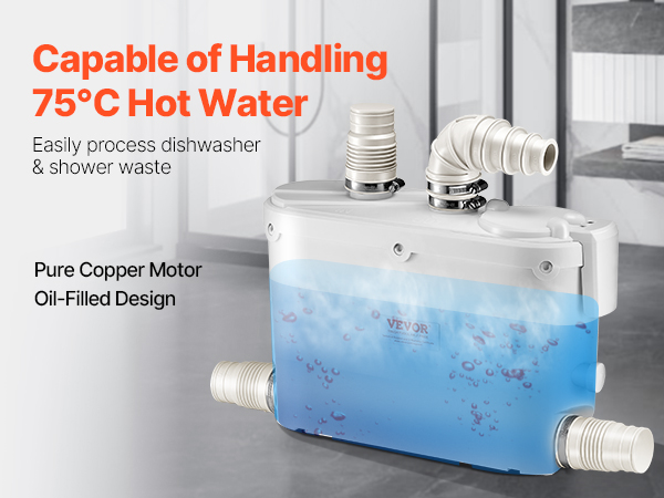 Фекальный насос VEVOR 500Вт, поток 110 л/мин, напор 8 м, 4 входа, система отведения сточных вод для туалета, кухни, душа, раковины