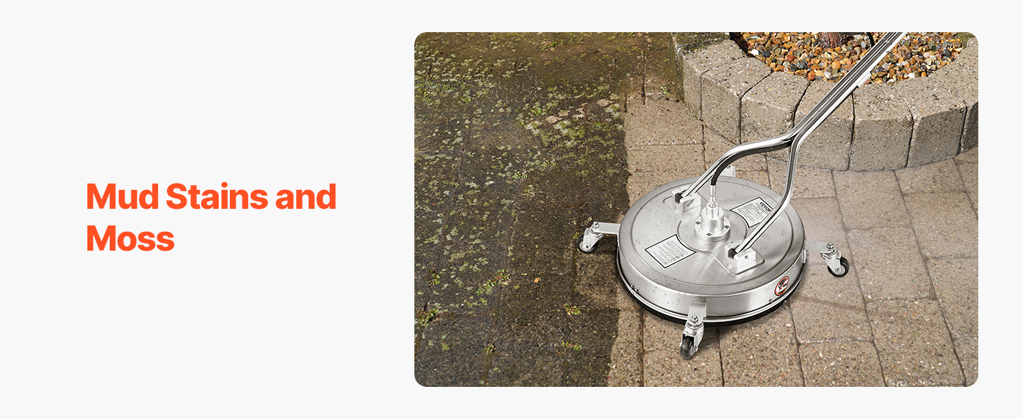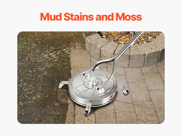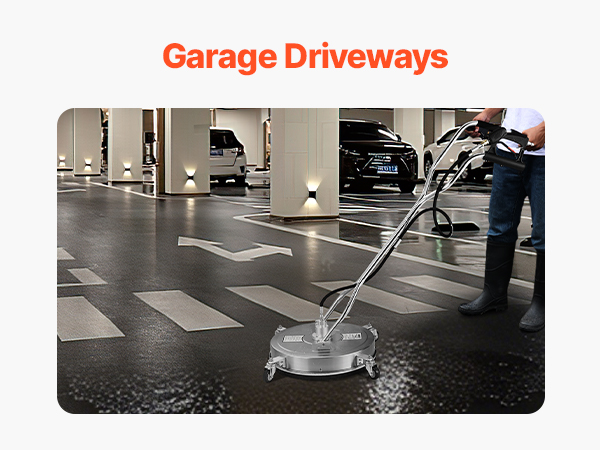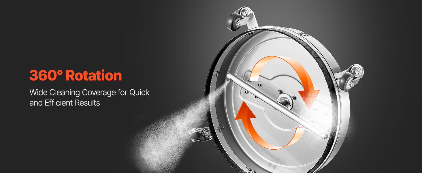 VEVOR 20" Pressure Washer Surface Cleaner, Stainless Steel Pressure Washer Attachments with 4 Wheels, 4500 Max PSI, 3/8 Quick Connector, 2 Spray Nozzles, Dual Handle, for Concrete, Patio, Sidewalk