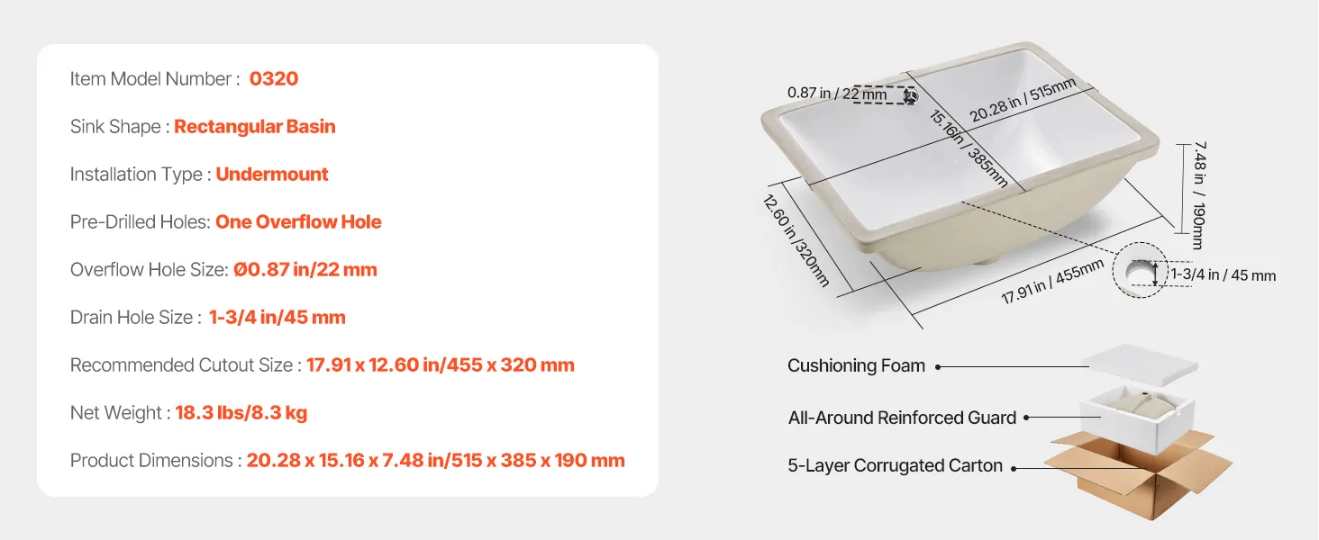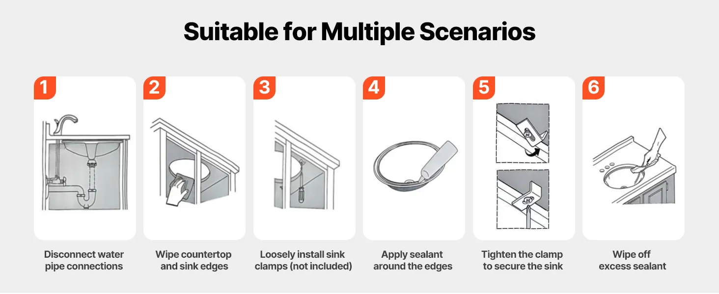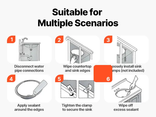 This drop in bathroom sink requires precise countertop cutouts before setup. It is recommended to use professional measurement and cutting based on the actual sink dimensions. Be sure to seal the edges securely to avoid damage caused by seeping water.