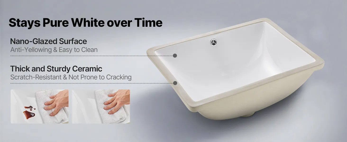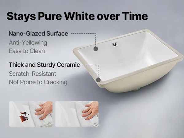 Fired at high temperatures for durability, this ceramic bathroom sink is coated with a nano-glaze layer that resists water stains, soap scum, and scratches. It stays bright and smooth over time, making everyday cleaning quick and effortless.