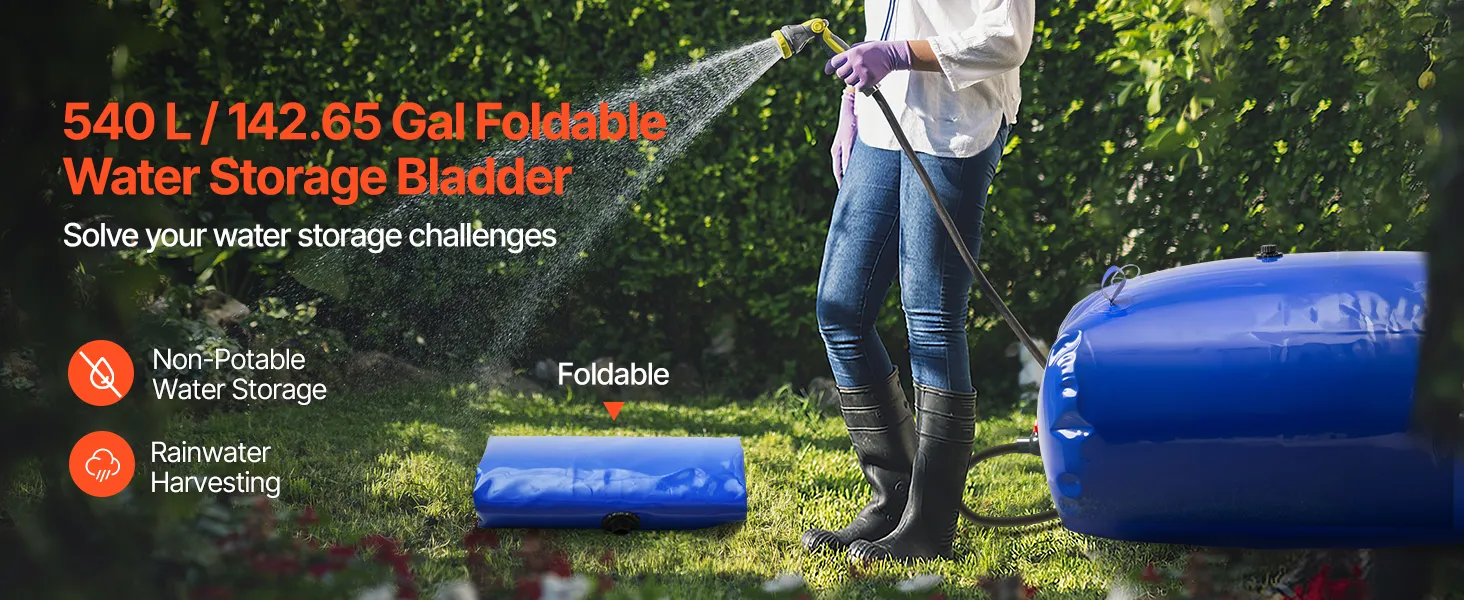 VEVOR Water Storage Bladder, 540L Water Storage Container Tank, 1000D PVC Large Capacity Soft Bag Bladder, Foldable Portable for Garden Irrigation, Camping, RV, Fire Prevention - Blue