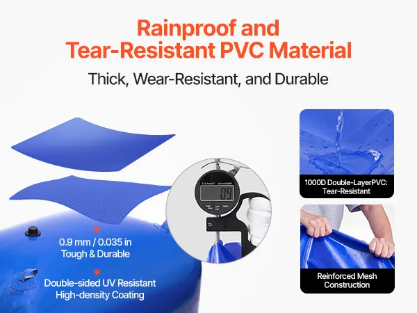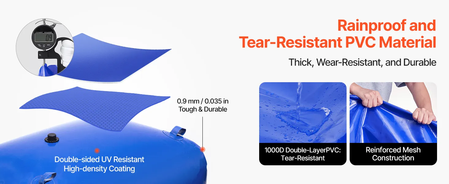 Made of durable 1000D double-layer PVC, this water storage tank is rainproof, flame-retardant, wear-resistant, and easy to mold, making it ideal for daily home use, outdoor activities, camping, and agricultural irrigation.