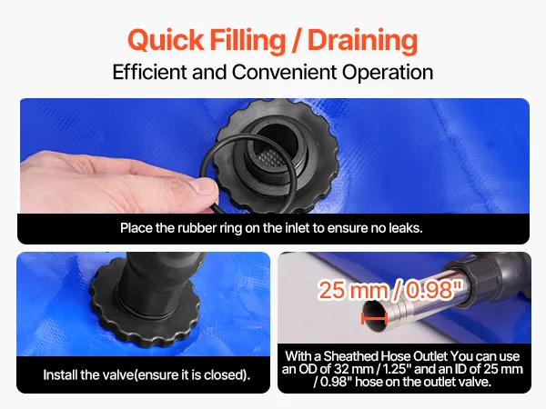 Our collapsible water storage container features large-diameter inlets and outlets, ensuring smooth water flow and easy compatibility with various hoses and high-pressure cleaners. Perfect for home use, camping, and other outdoor activities.