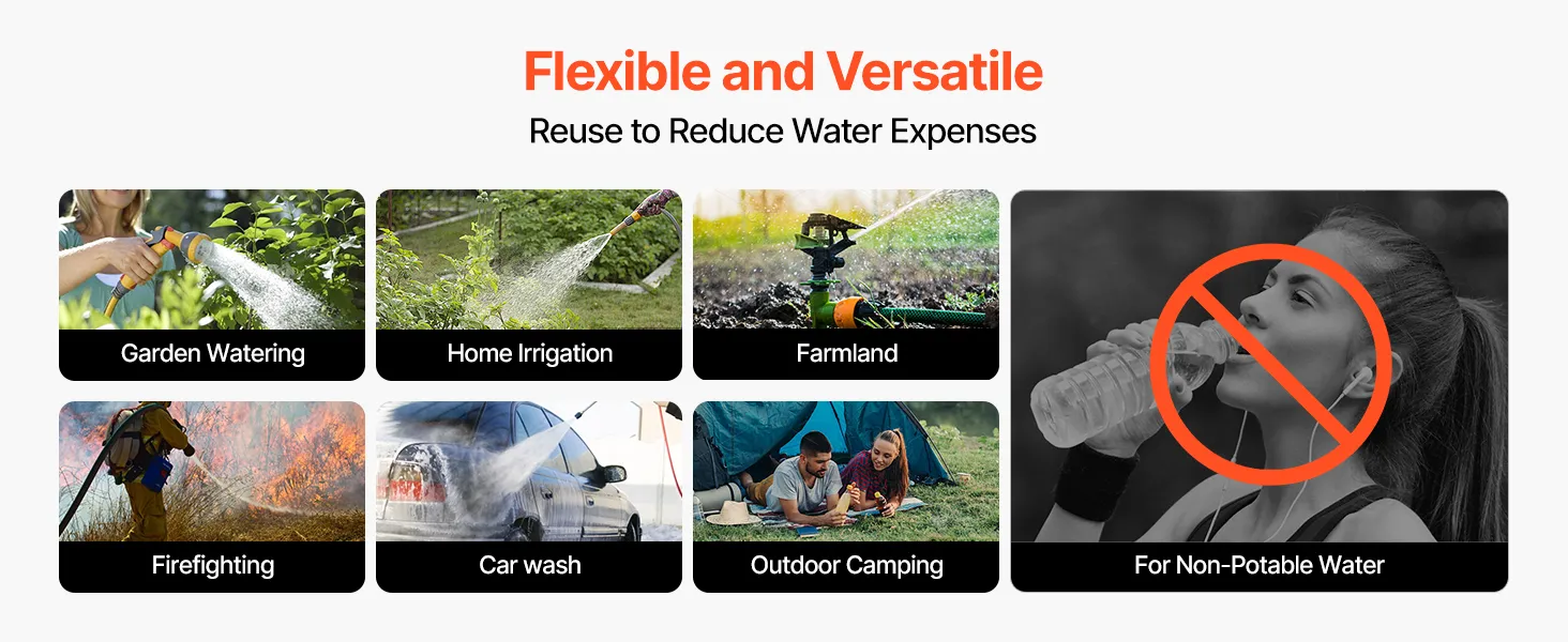 Whether for garden irrigation, camping, or emergency water supply, its strong sealing and leak-proof performance ensures maximum water utilization, providing greater efficiency and reliability, especially in water-scarce situations.