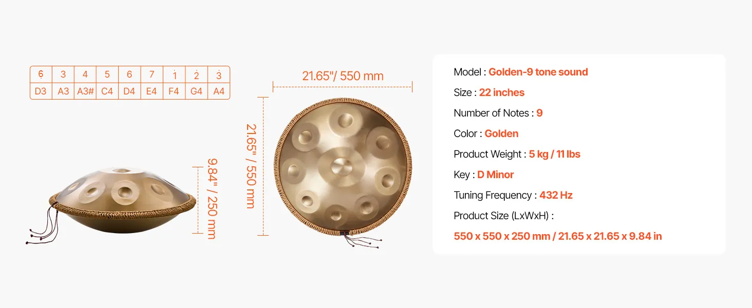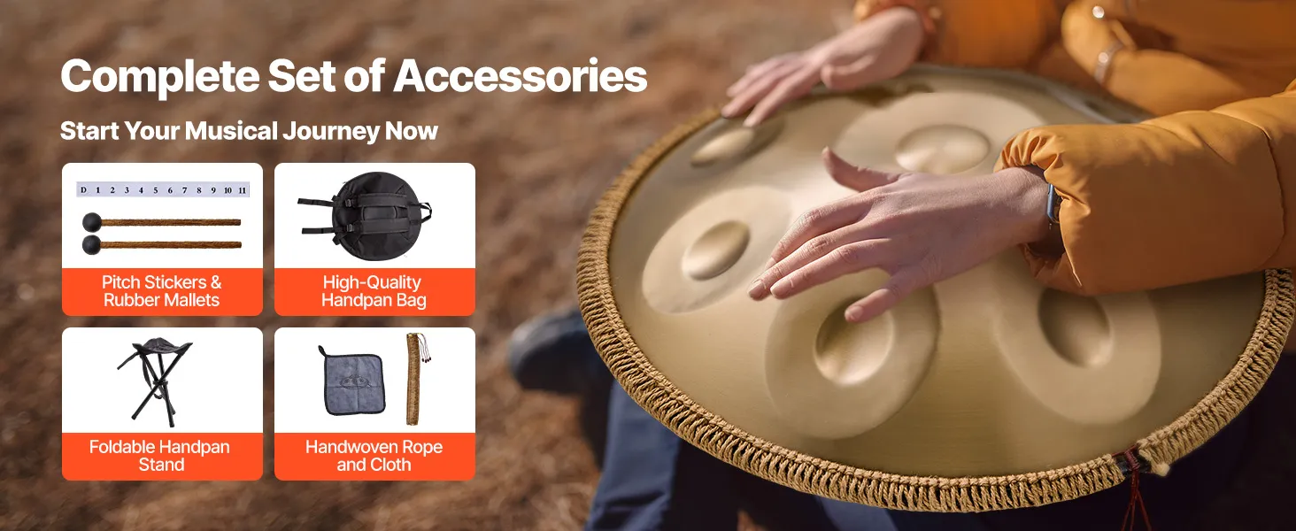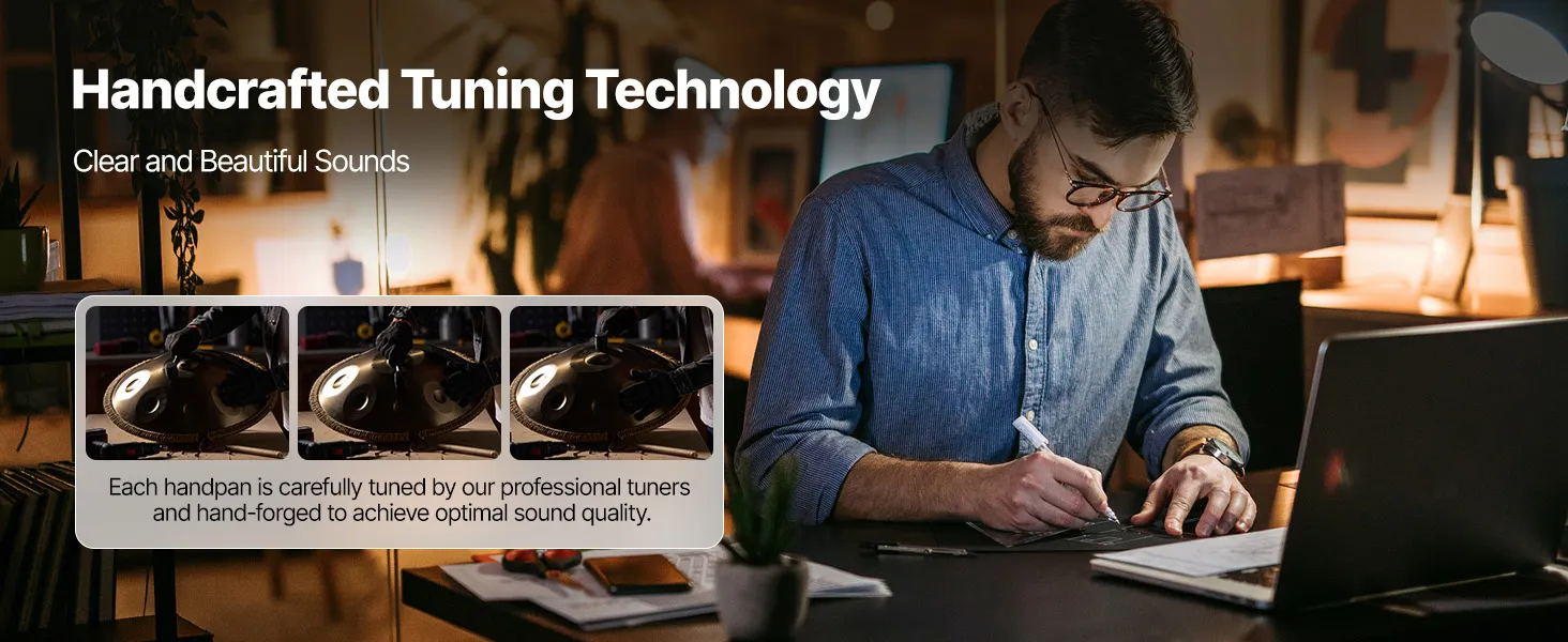 Our handpan is precisely tuned by professional tuners for accurate note. It ensures the played melody is harmonious and beautiful. Combined with premium materials, the pitch remains stable and is not easy to deviate with long-term use.