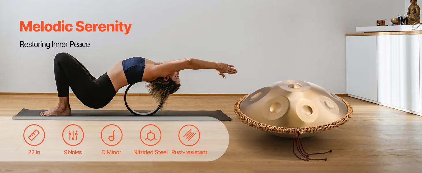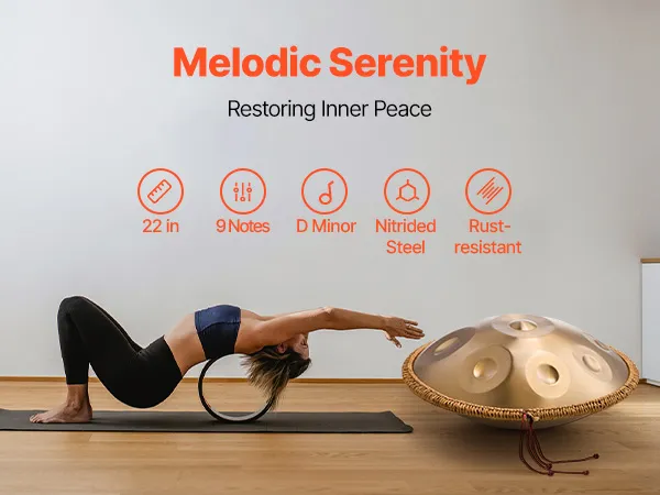 Our handpan drum is made of nitrided steel, which is sturdy and durable. With sensitive resonance, its ethereal and pleasant metallic resonance tone soothes the body and mind, helping to relax nerves, relieve stress, and enhance emotional well-being.