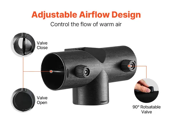 This air vent hose connector valve flap features two 90° rotating valves that allow you to control which side releases airflow. It is designed for flexible heating management, enabling efficient warm air distribution and easy integration into diesel heater systems.