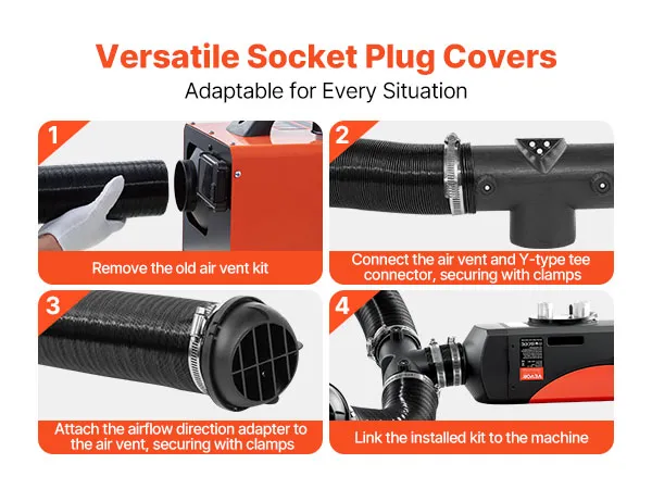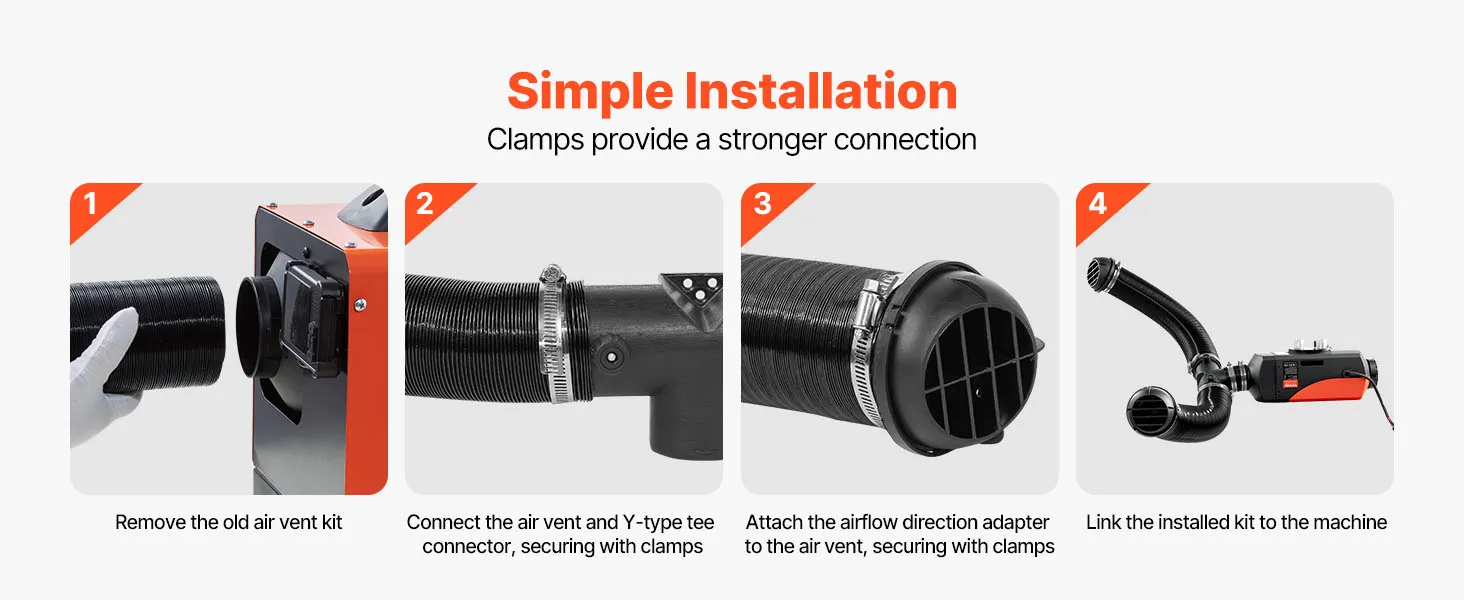 With VEVOR diesel heater connector kit, installation can be completed in only 4 steps. Make sure the old display is removed entirely, and check that all clamps are securely fastened before operation to achieve reliable heating performance.