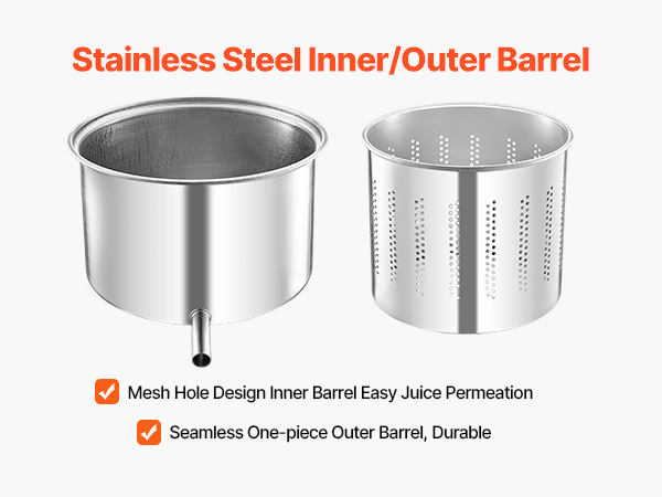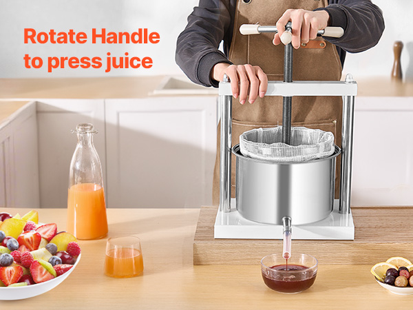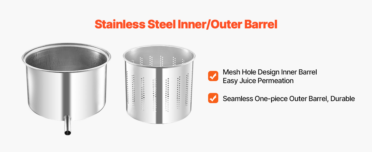Утолщенная прессующая пластина из нержавеющей стали обеспечивает более тщательное прессование, эффективное отжимание и быстрый выход сока. В большой емкости объемом 5 л/1,45 галлона постоянно получается свежий сок.