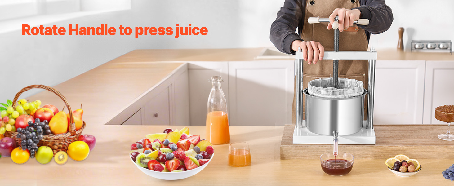 VEVOR 1.45 Gal/5L Fruit Wine Press, 2 Stainless Steel Barrels, Manual Juice Maker, Cider Apple Grape Tincture Honey Olive Oil Making Press with Triangular Handle for Outdoor Kitchen Home