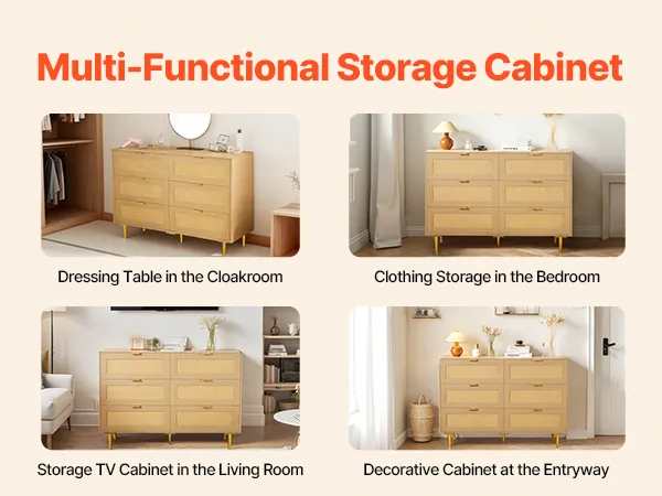 This wicker dressers for bedroom provides you with a great storage solution. It can be used as a TV cabinet, storage cabinet, entrance cabinet, etc, suitable for various occasions. It is a storage cabinet as well as a decorative cabinet.